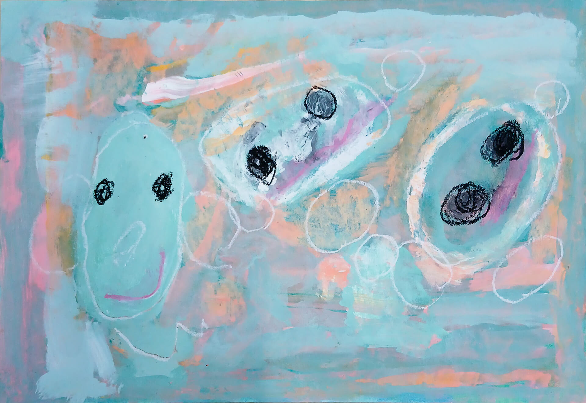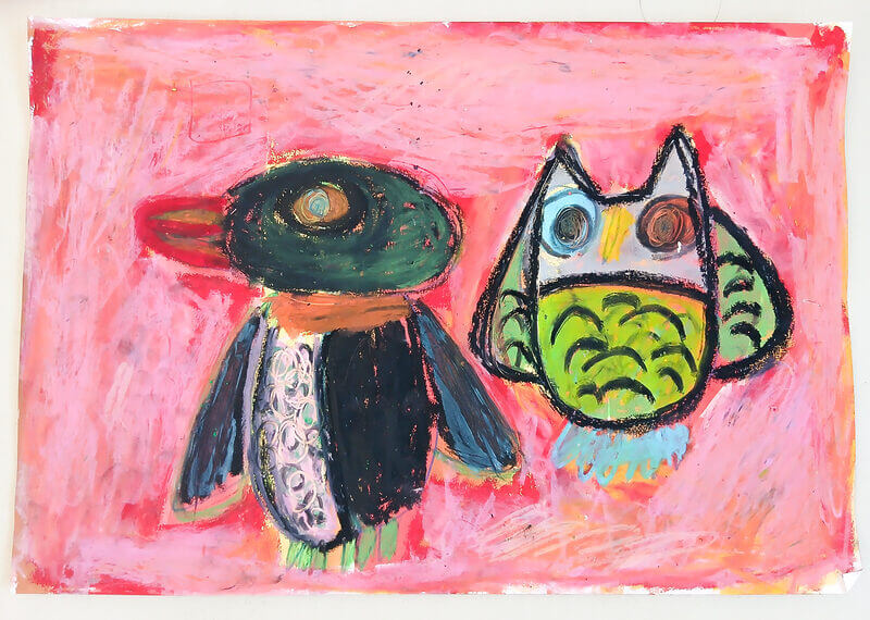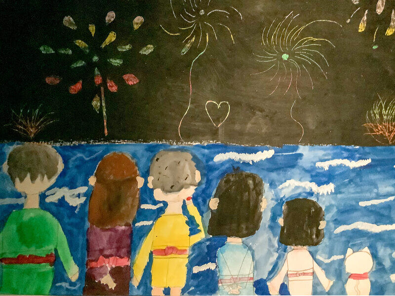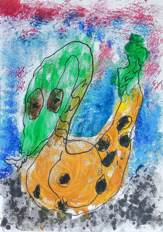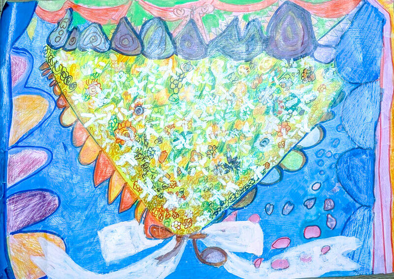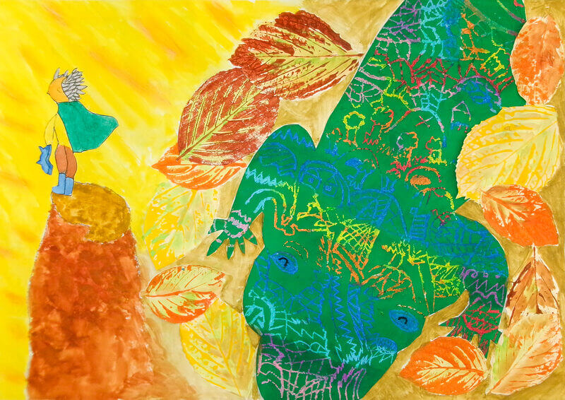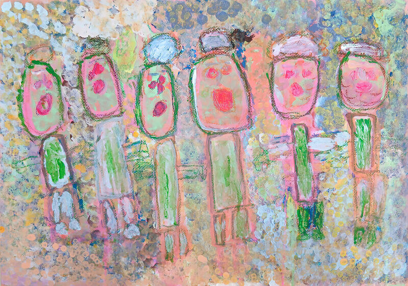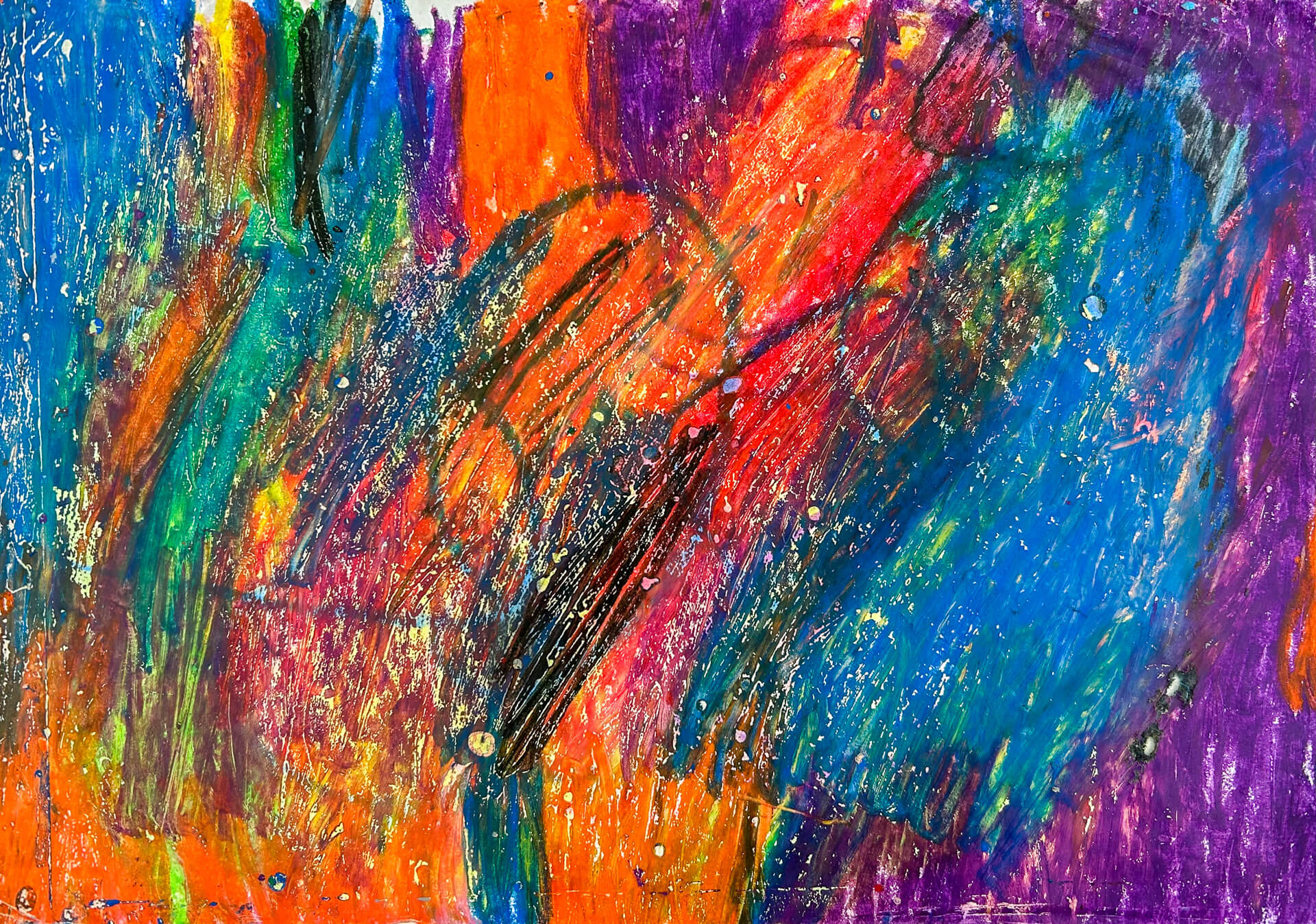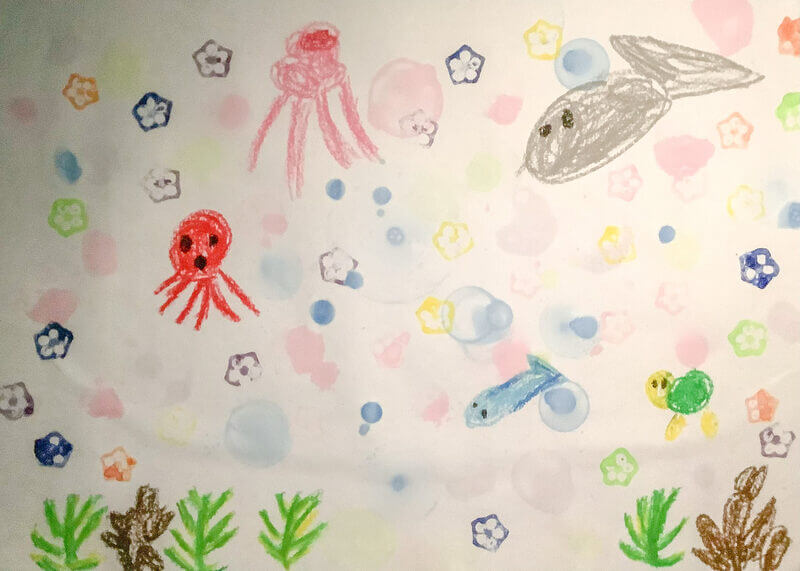 (38×54cm / 絵の具・アクリル絵の具・油性ペン・クレヨン・画用紙・パステル)