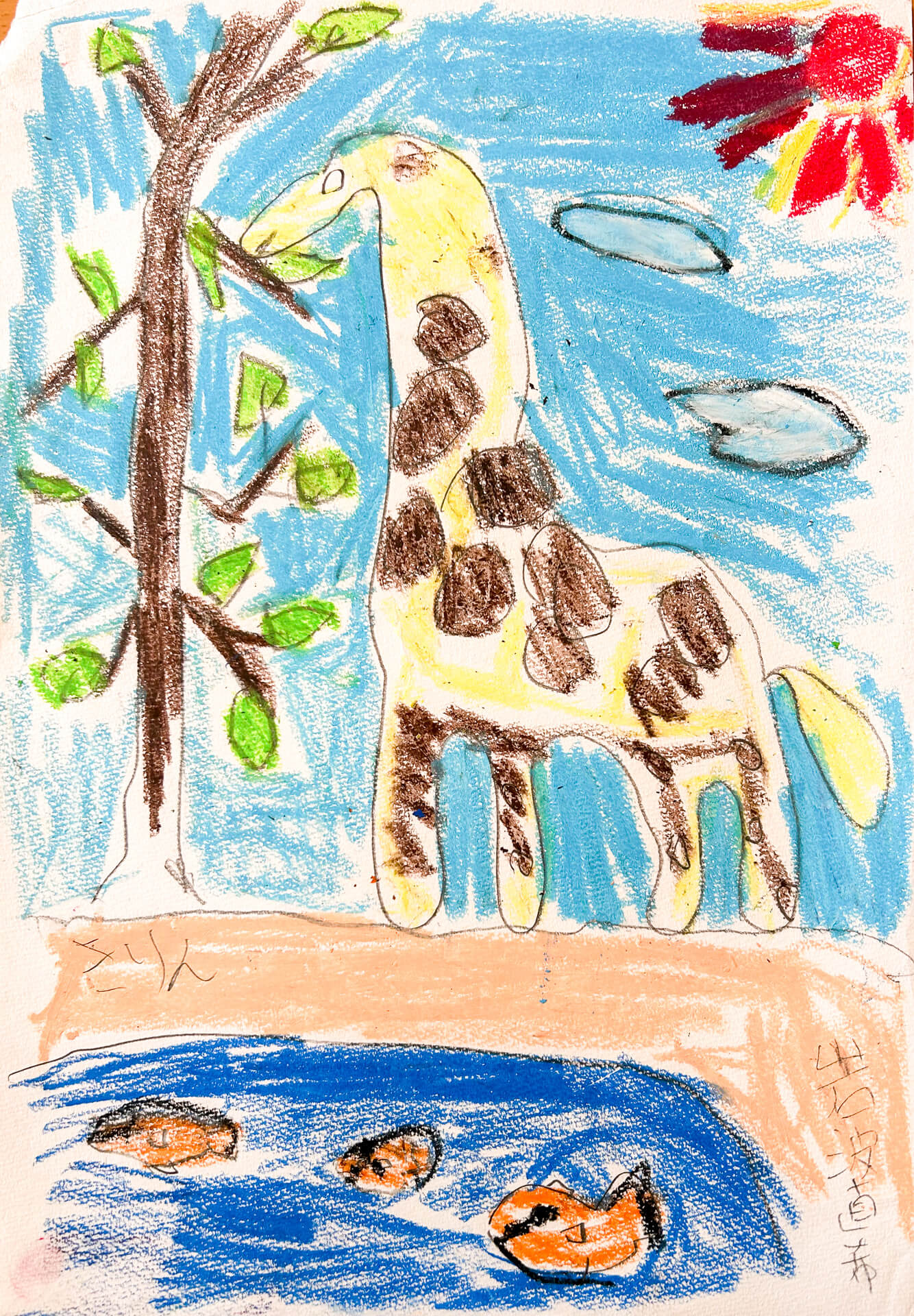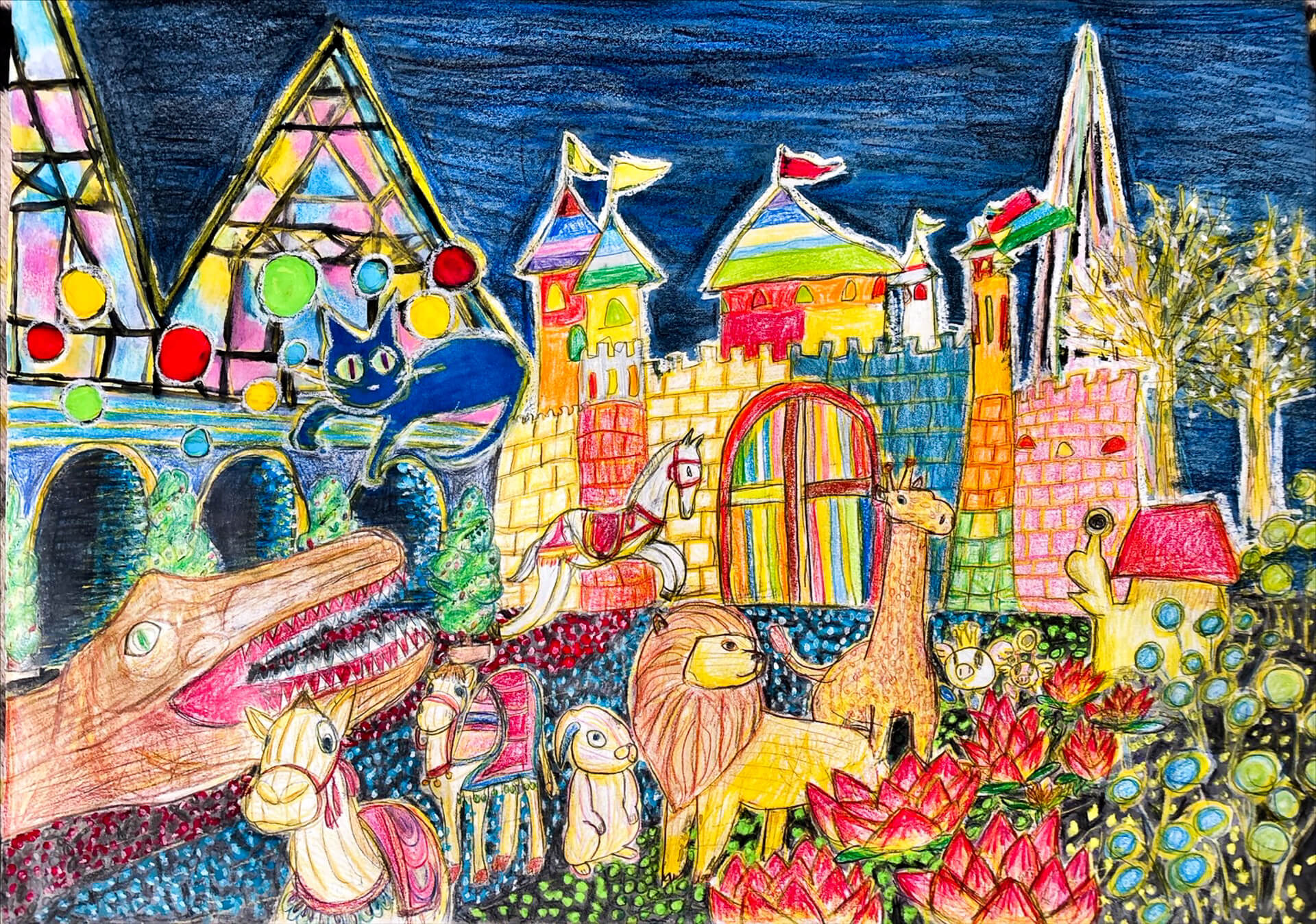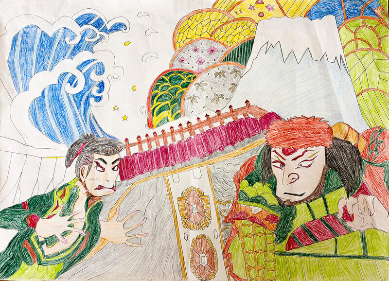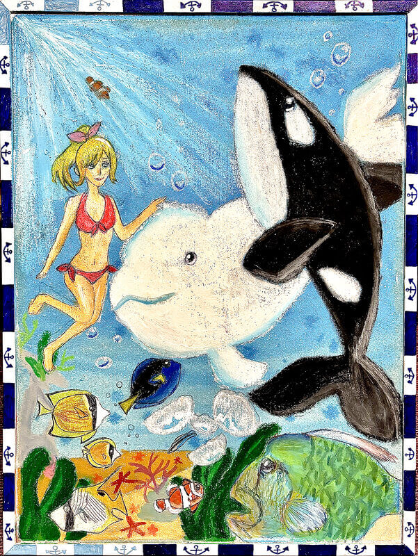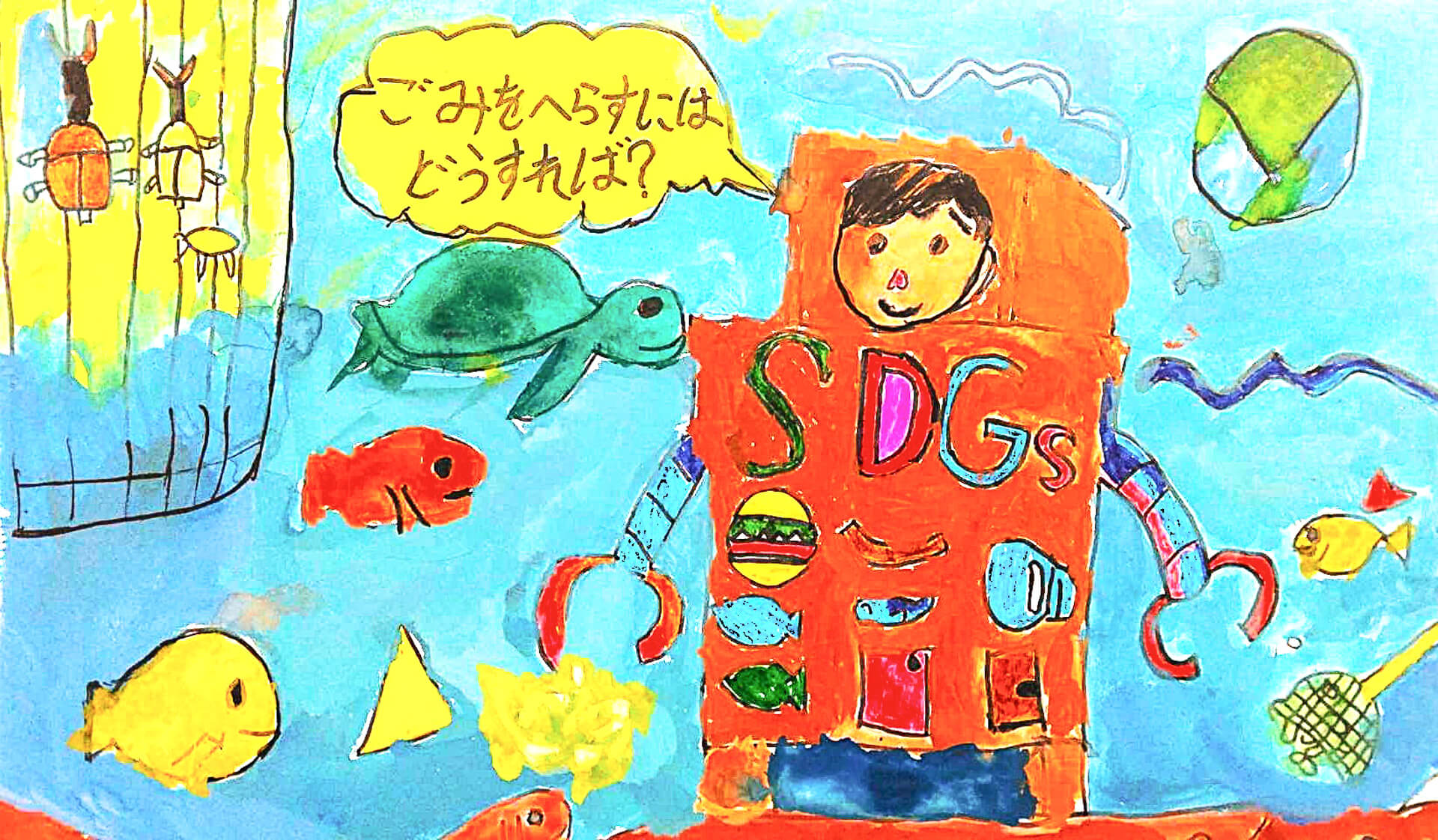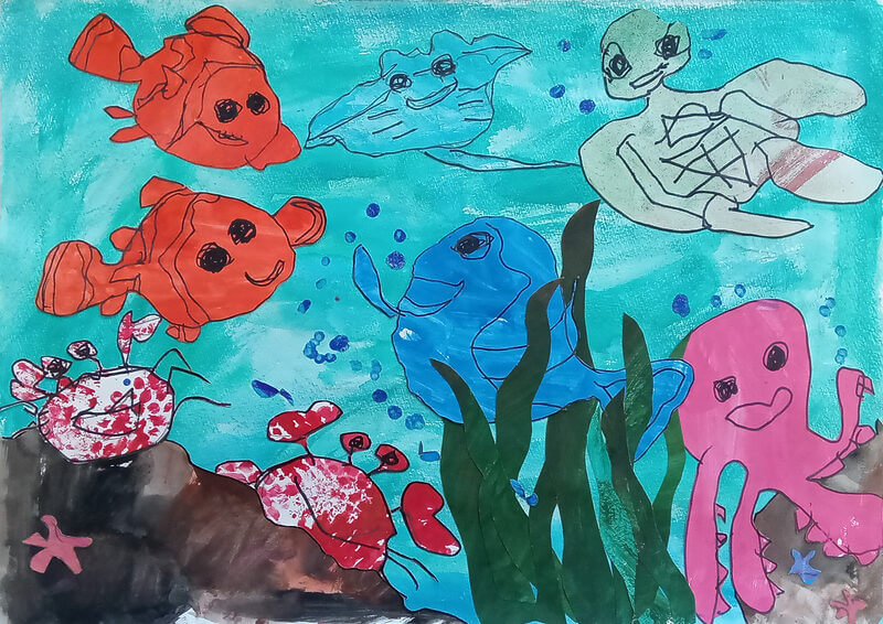 (38×54cm / 絵の具・アクリル絵の具・油性ペン・クレヨン・画用紙・パステル)