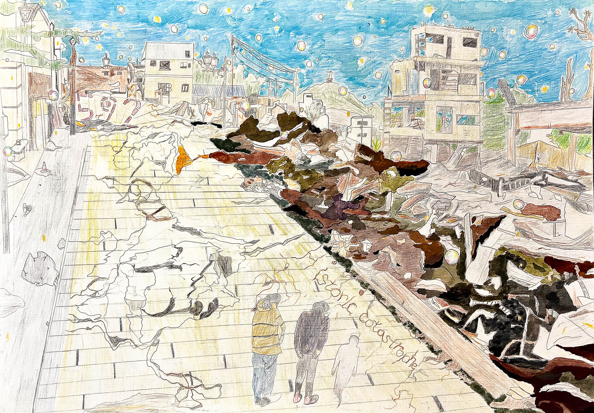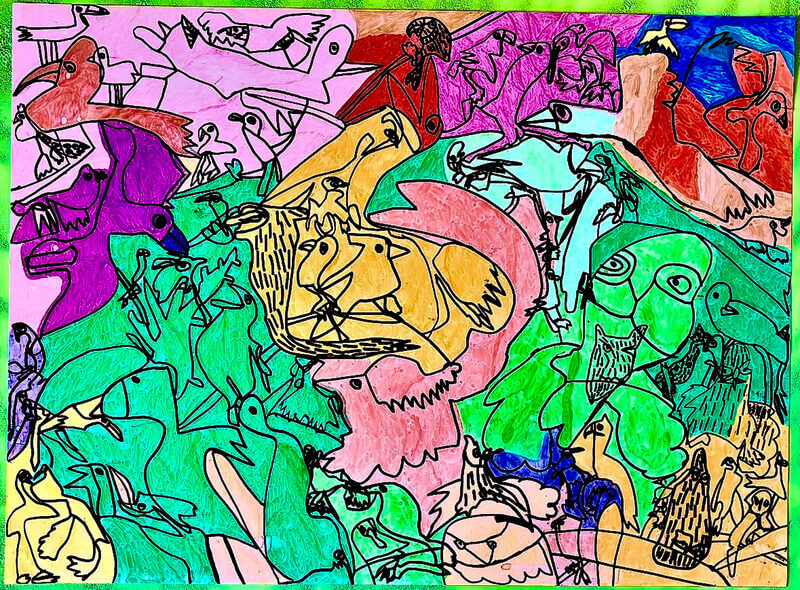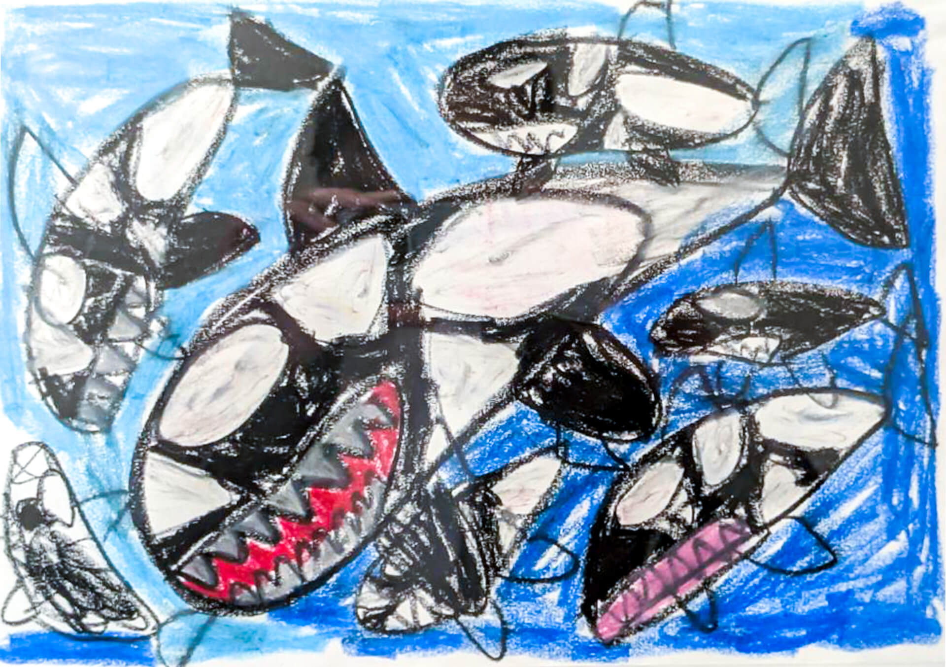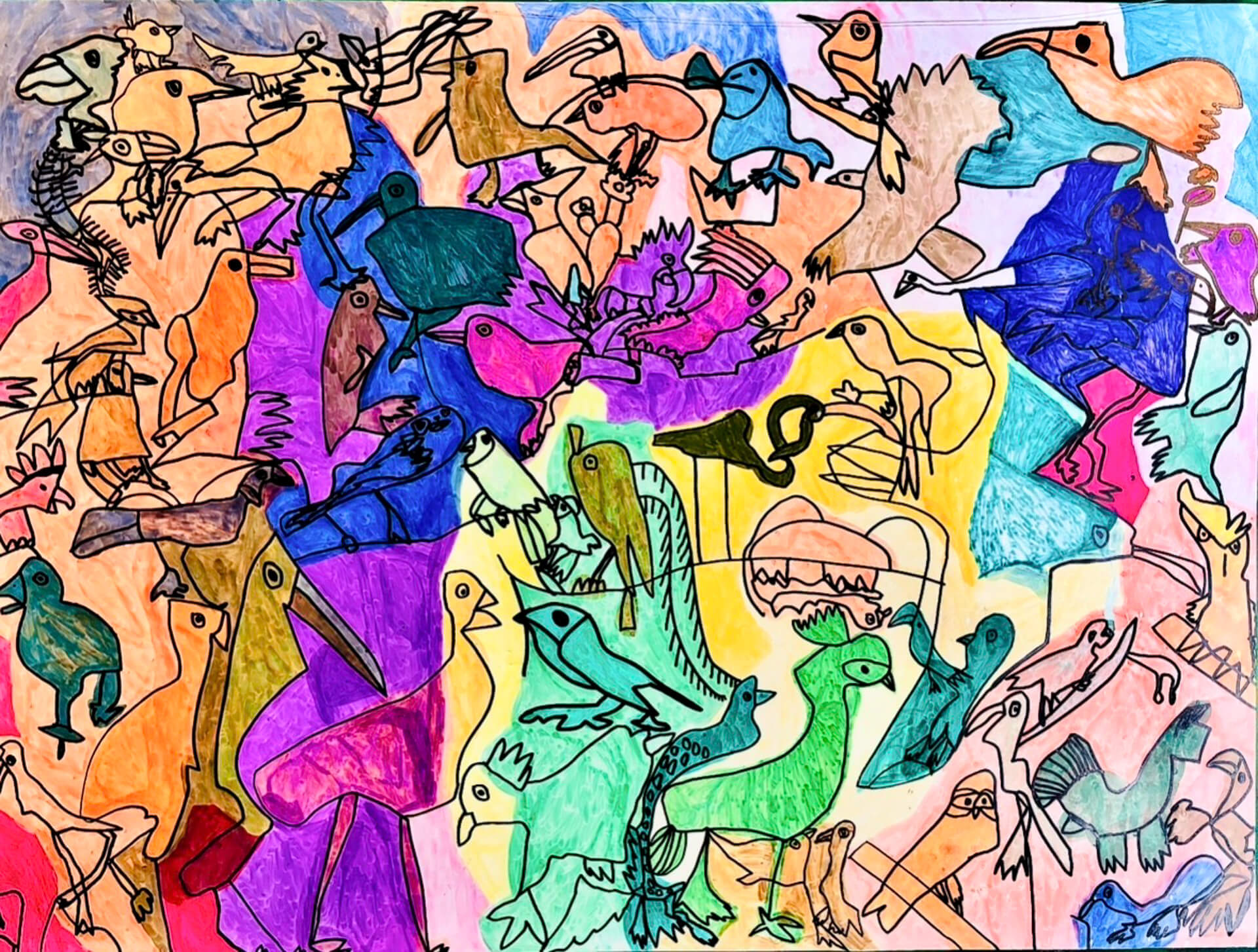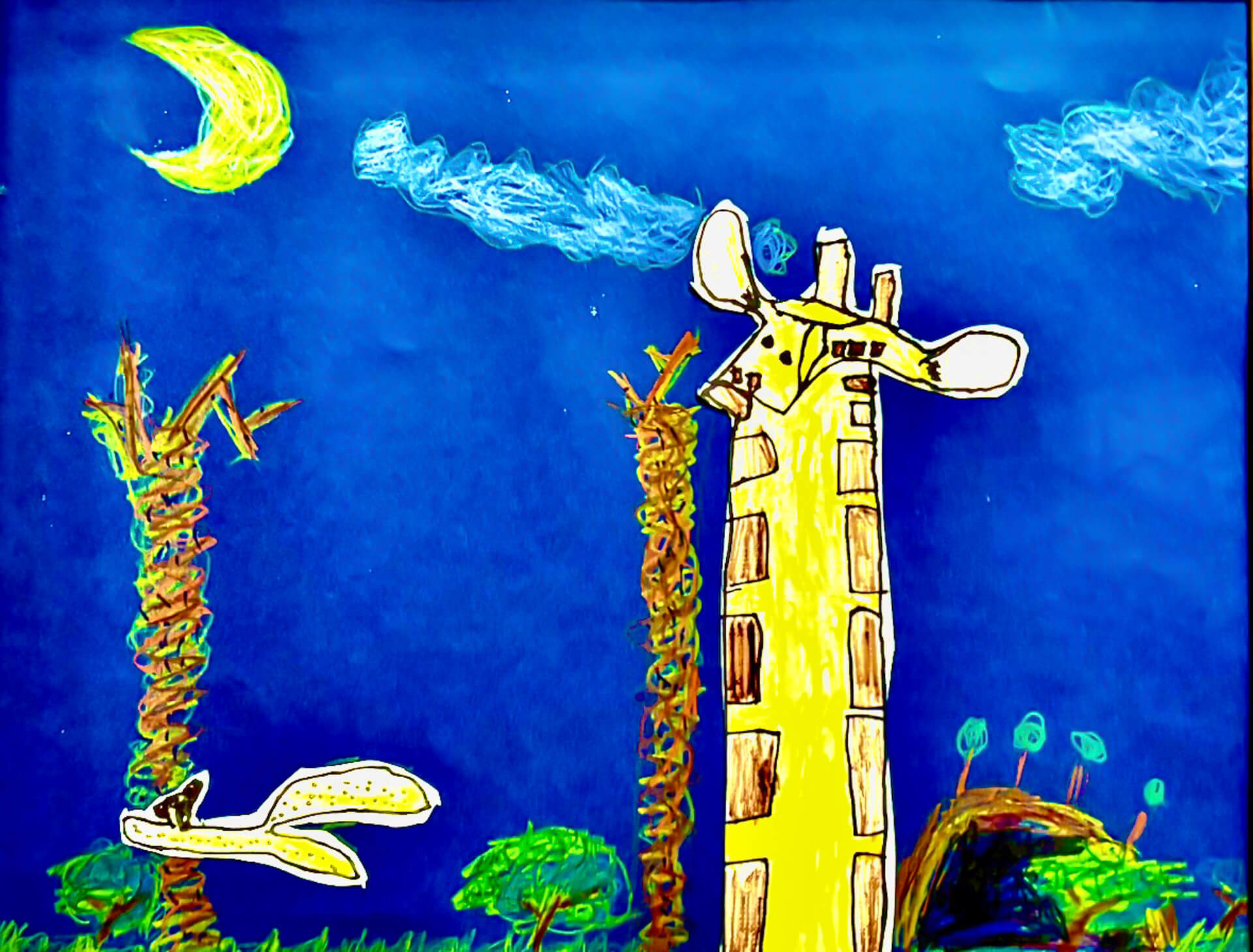 (38×54cm / 絵の具・アクリル絵の具・油性ペン・クレヨン・画用紙・パステル)