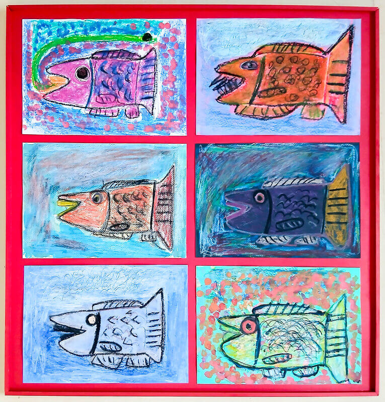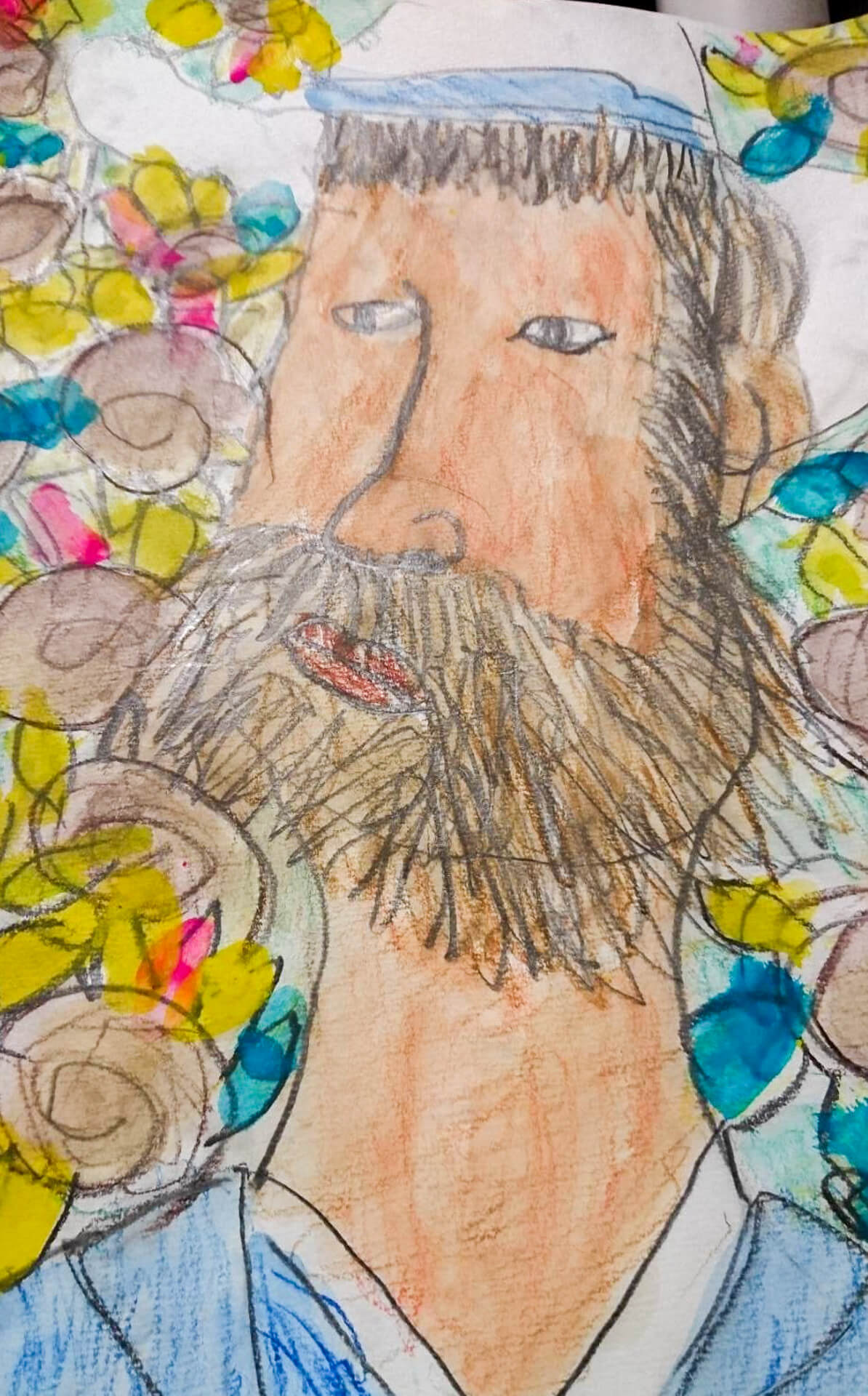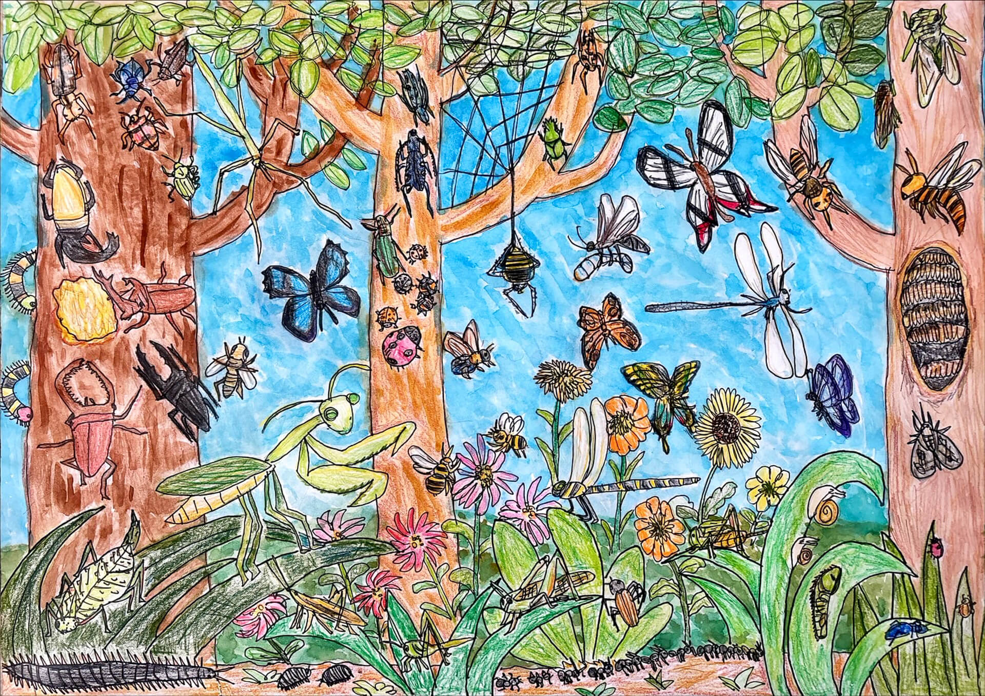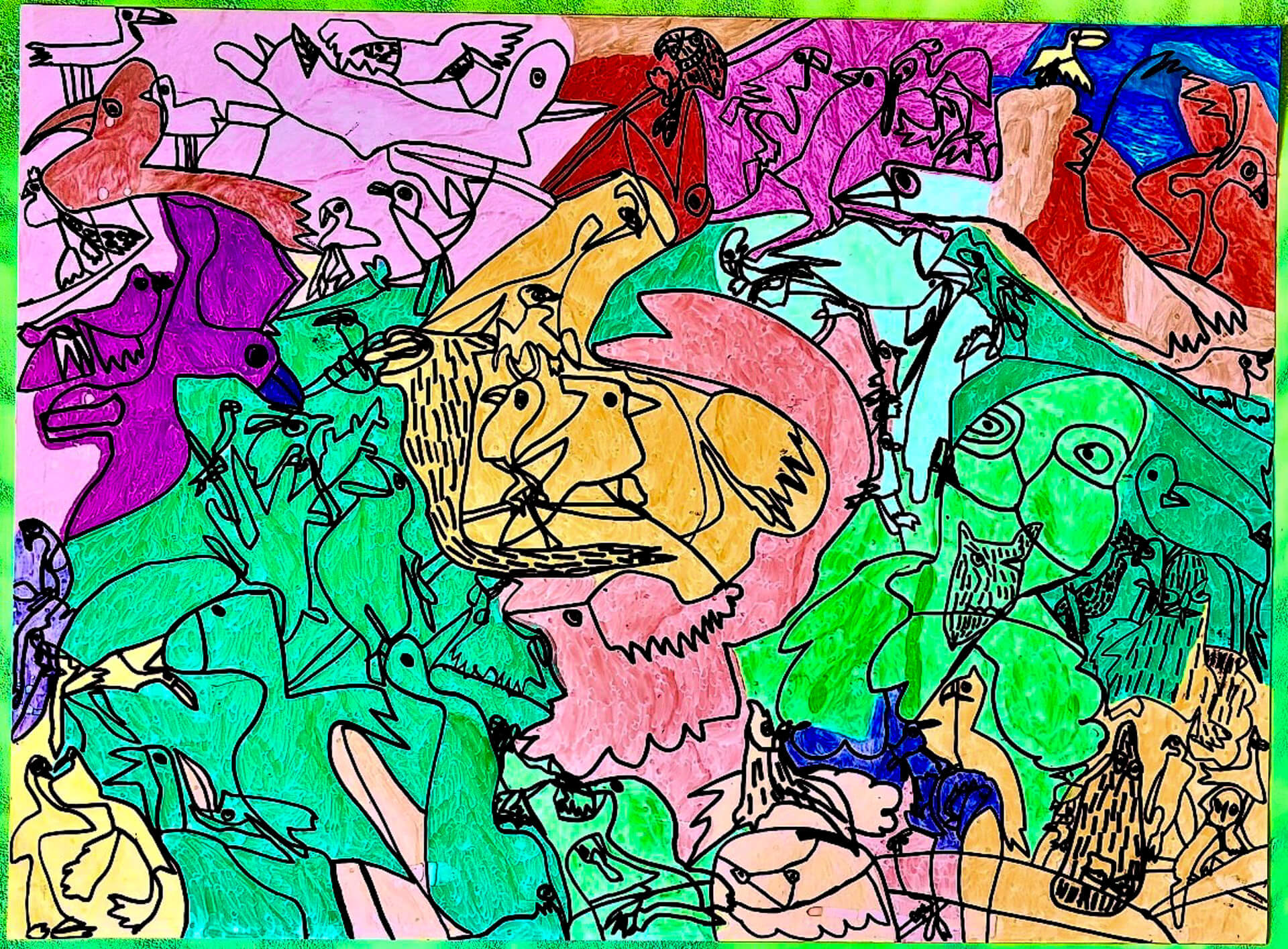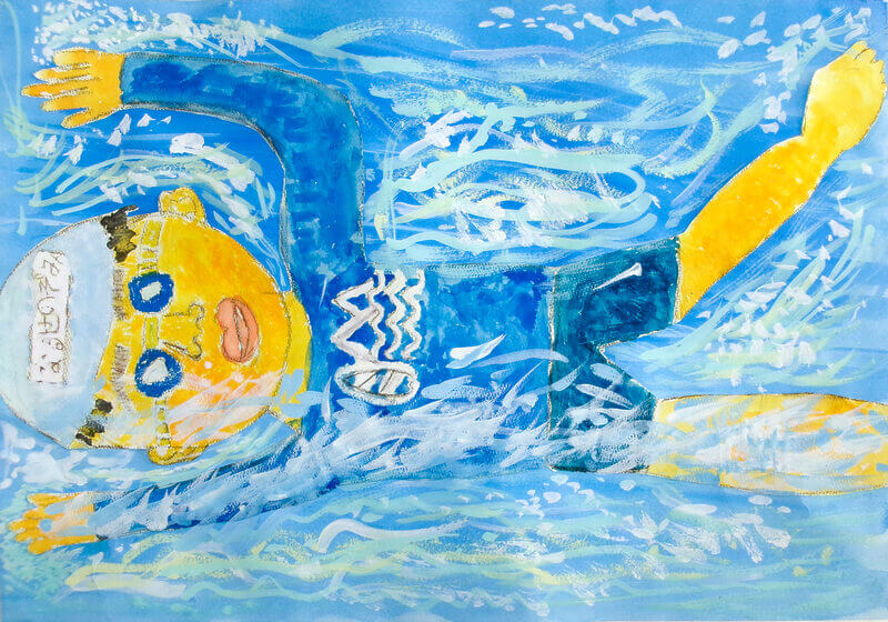 (38×54cm / 絵の具・アクリル絵の具・油性ペン・クレヨン・画用紙・パステル)