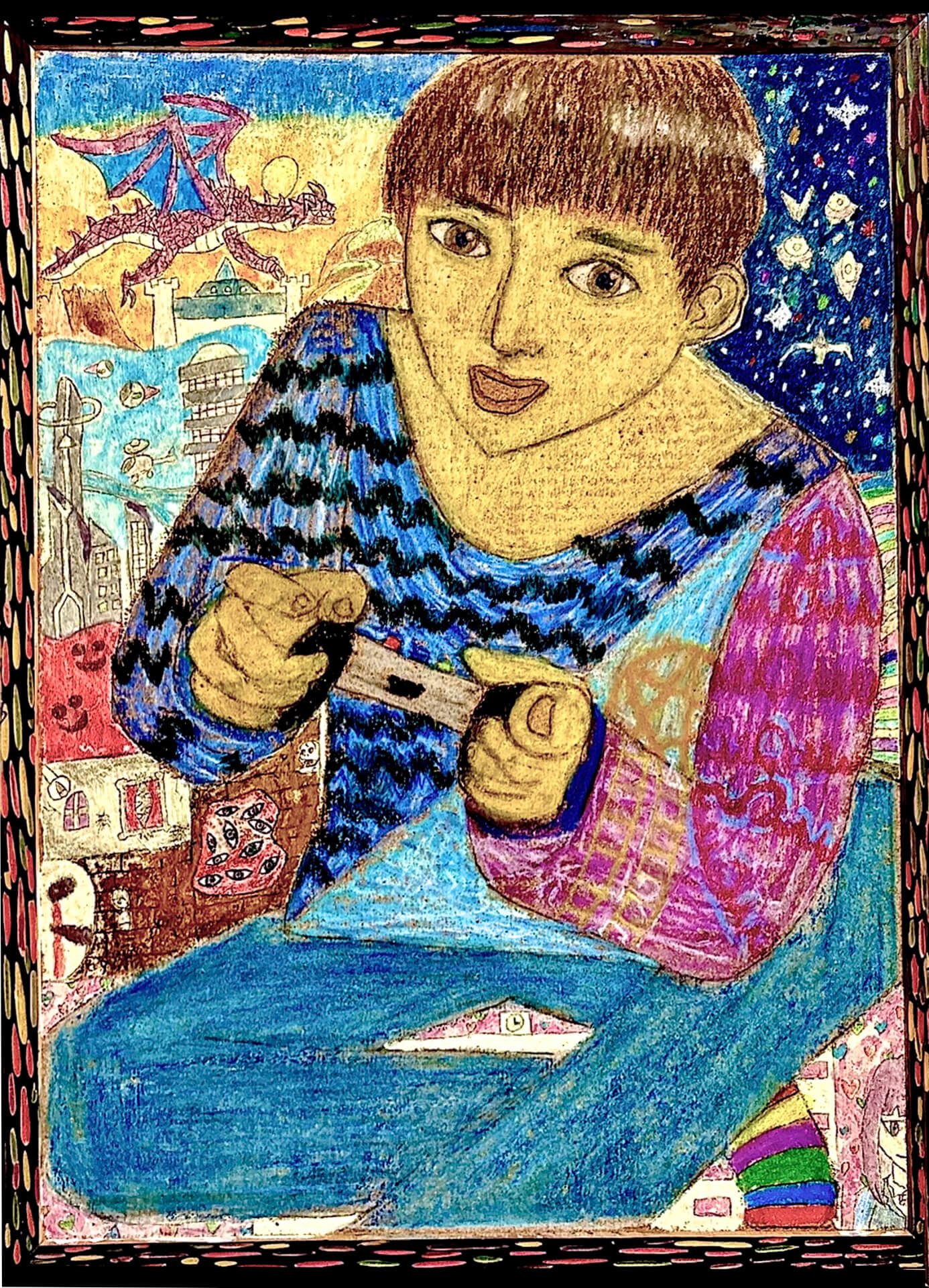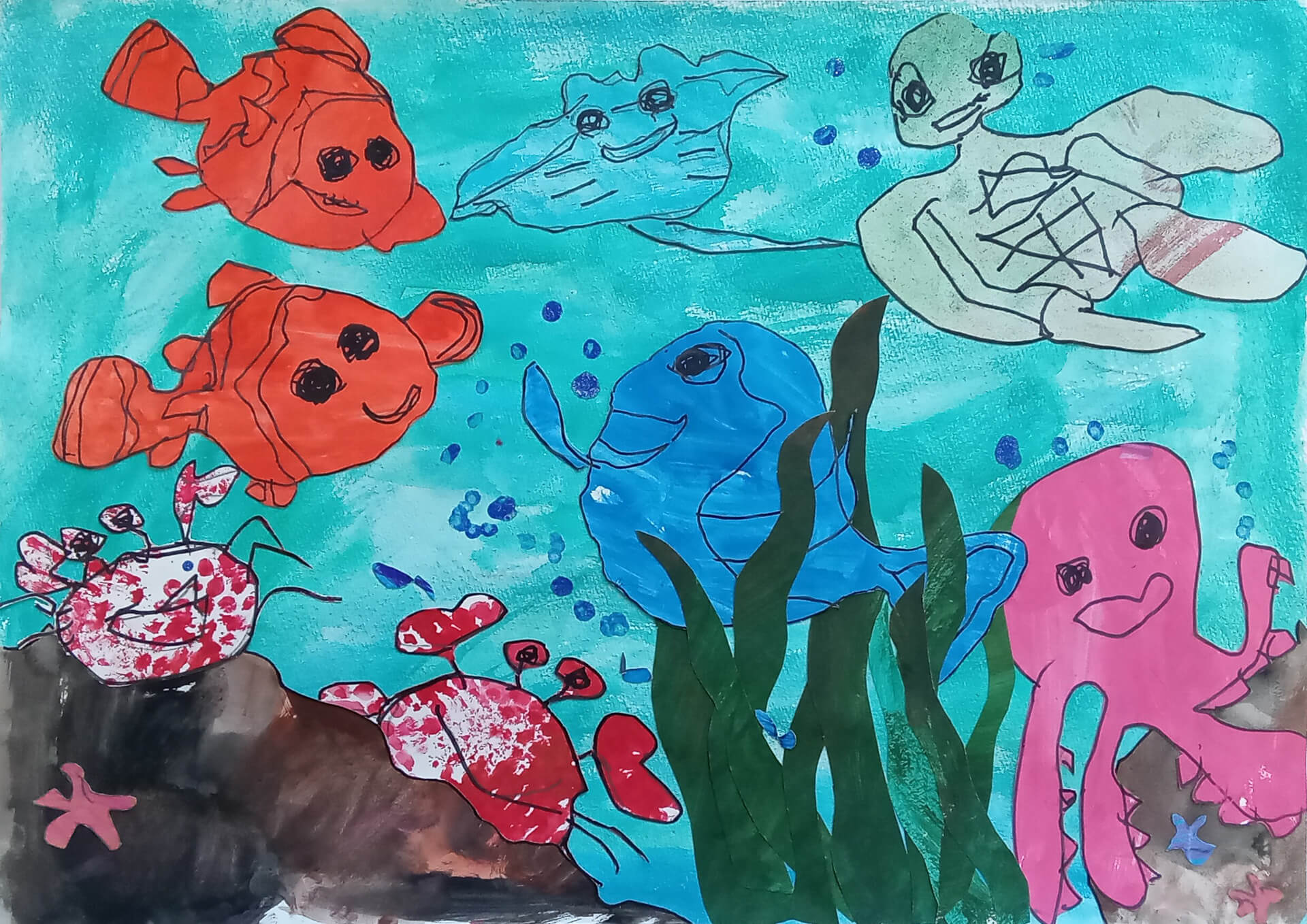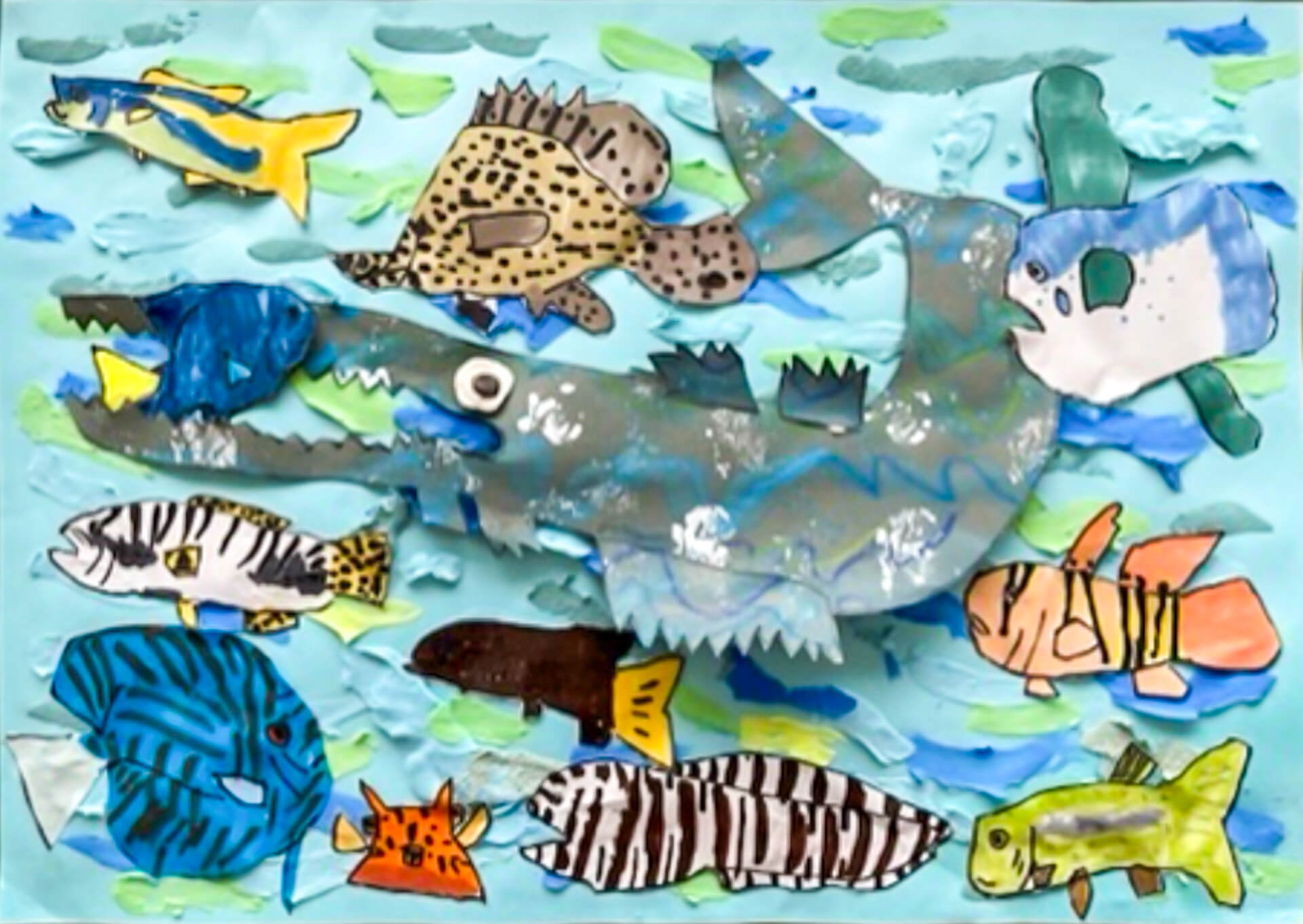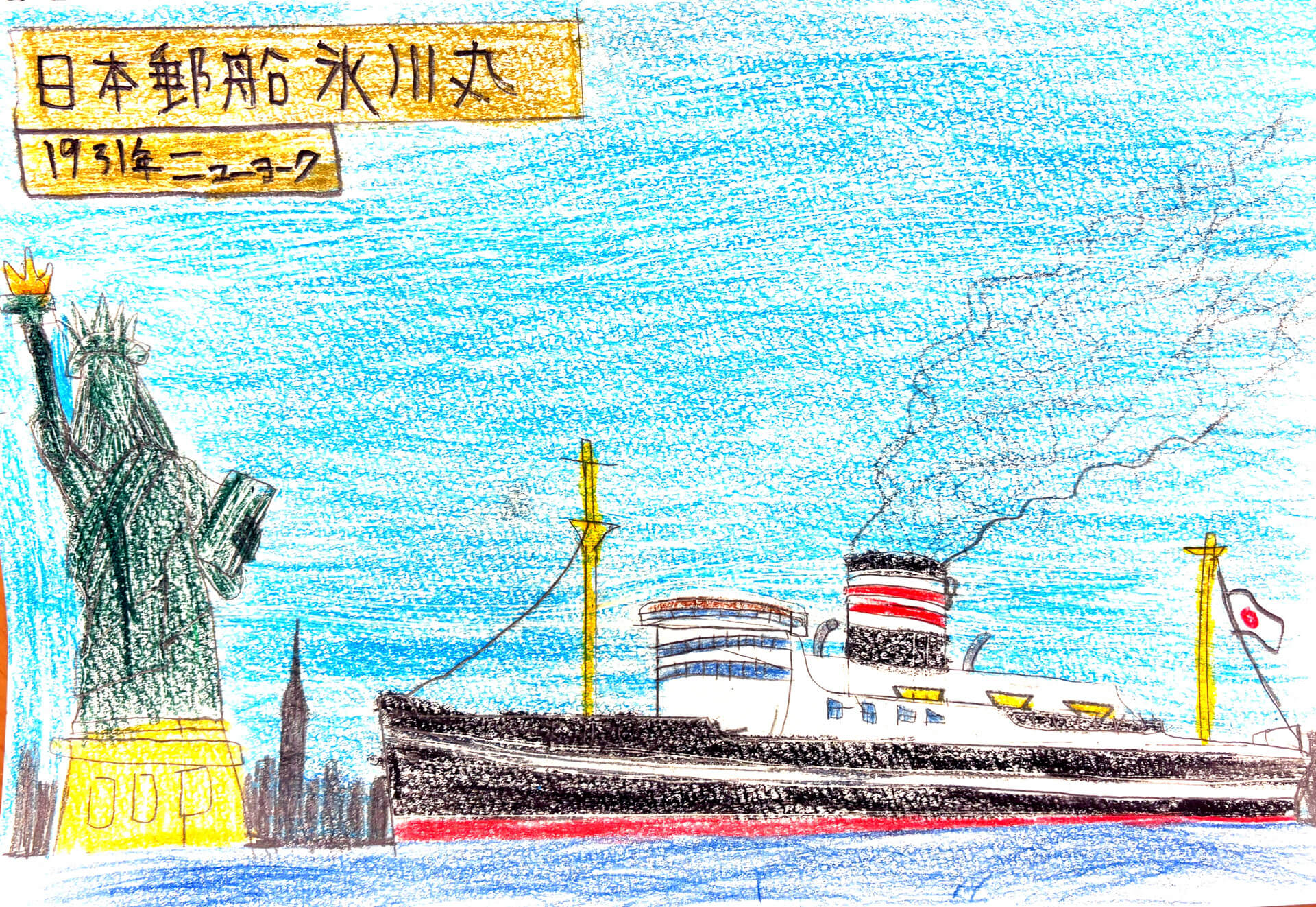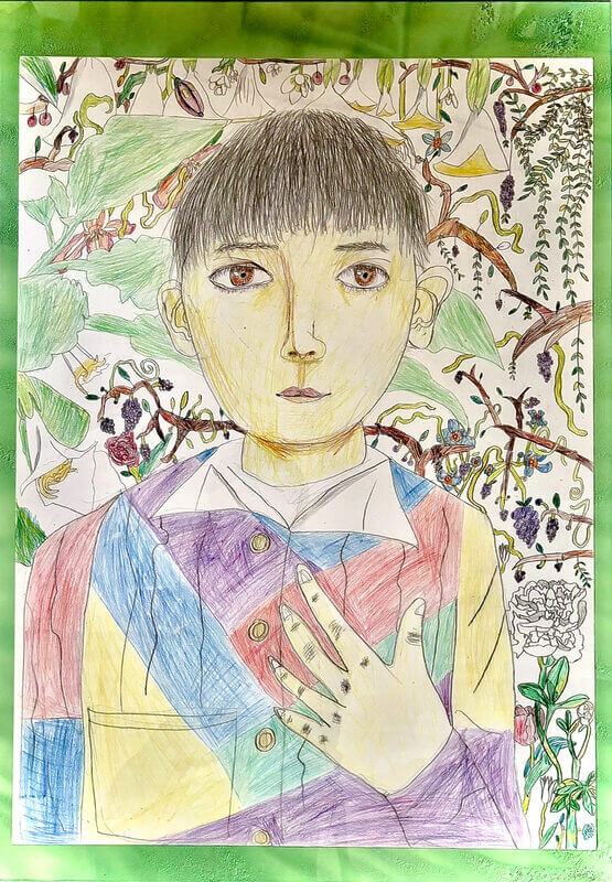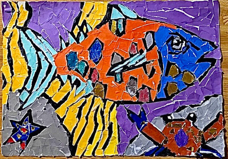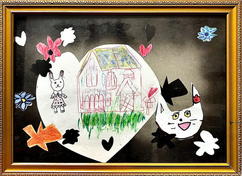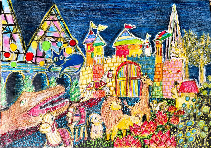(38×54cm / クレヨン・絵の具・画用紙・色画用紙・アクリル絵の具・コンテ)