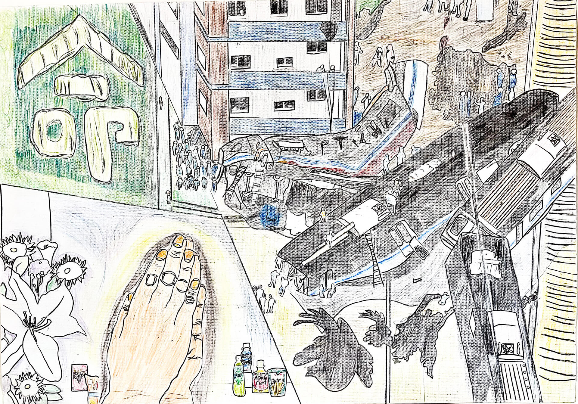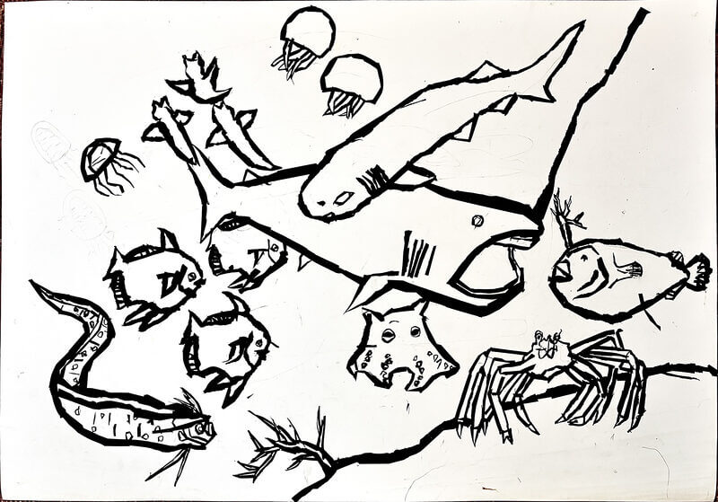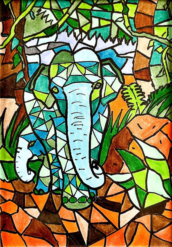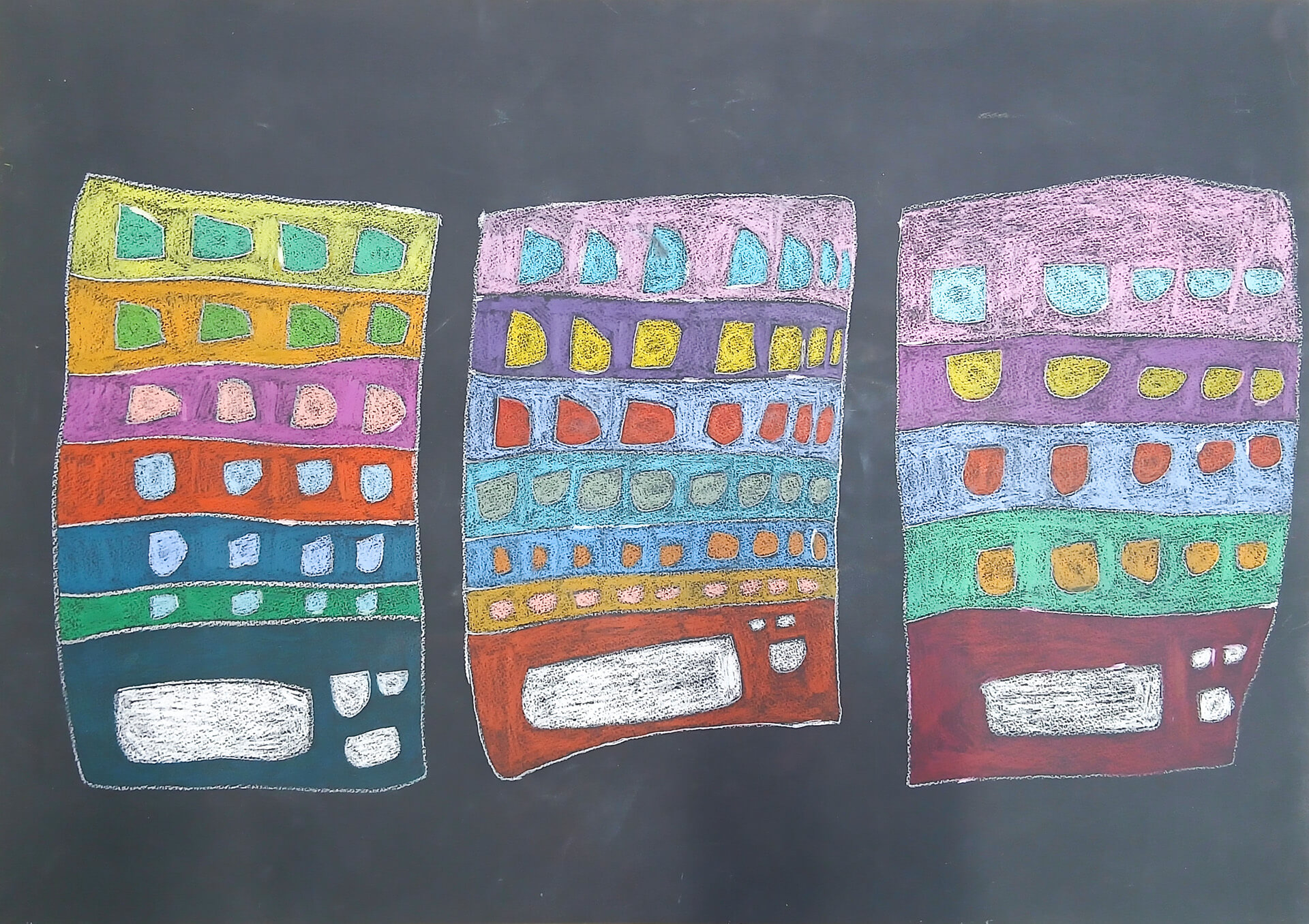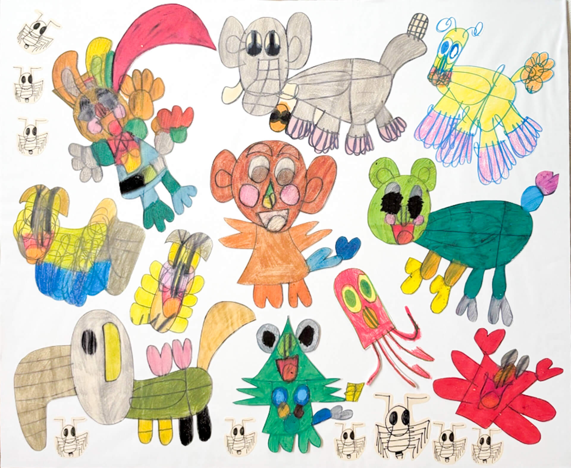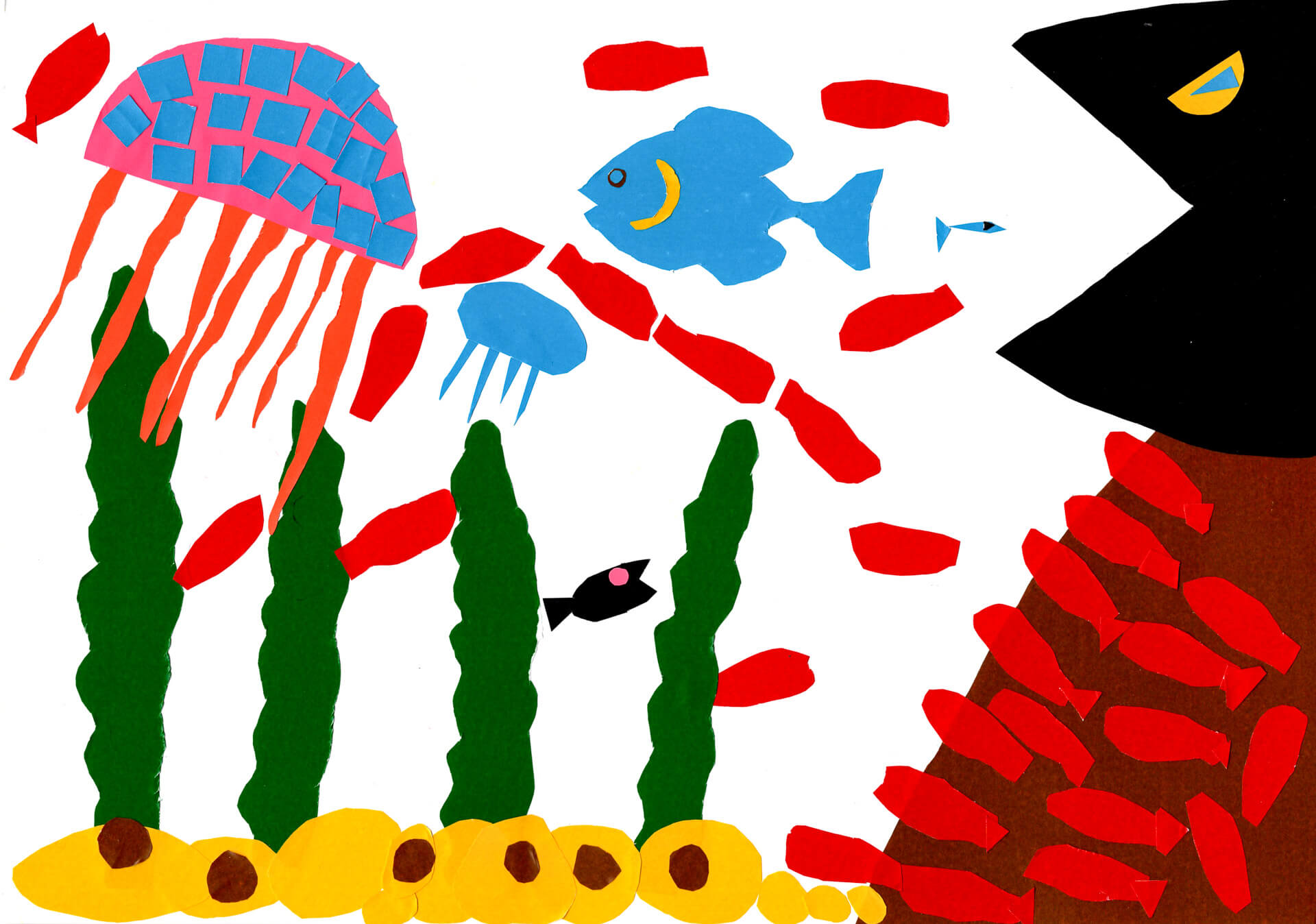 (38×54cm / クレヨン・絵の具・画用紙・色画用紙・アクリル絵の具・コンテ)