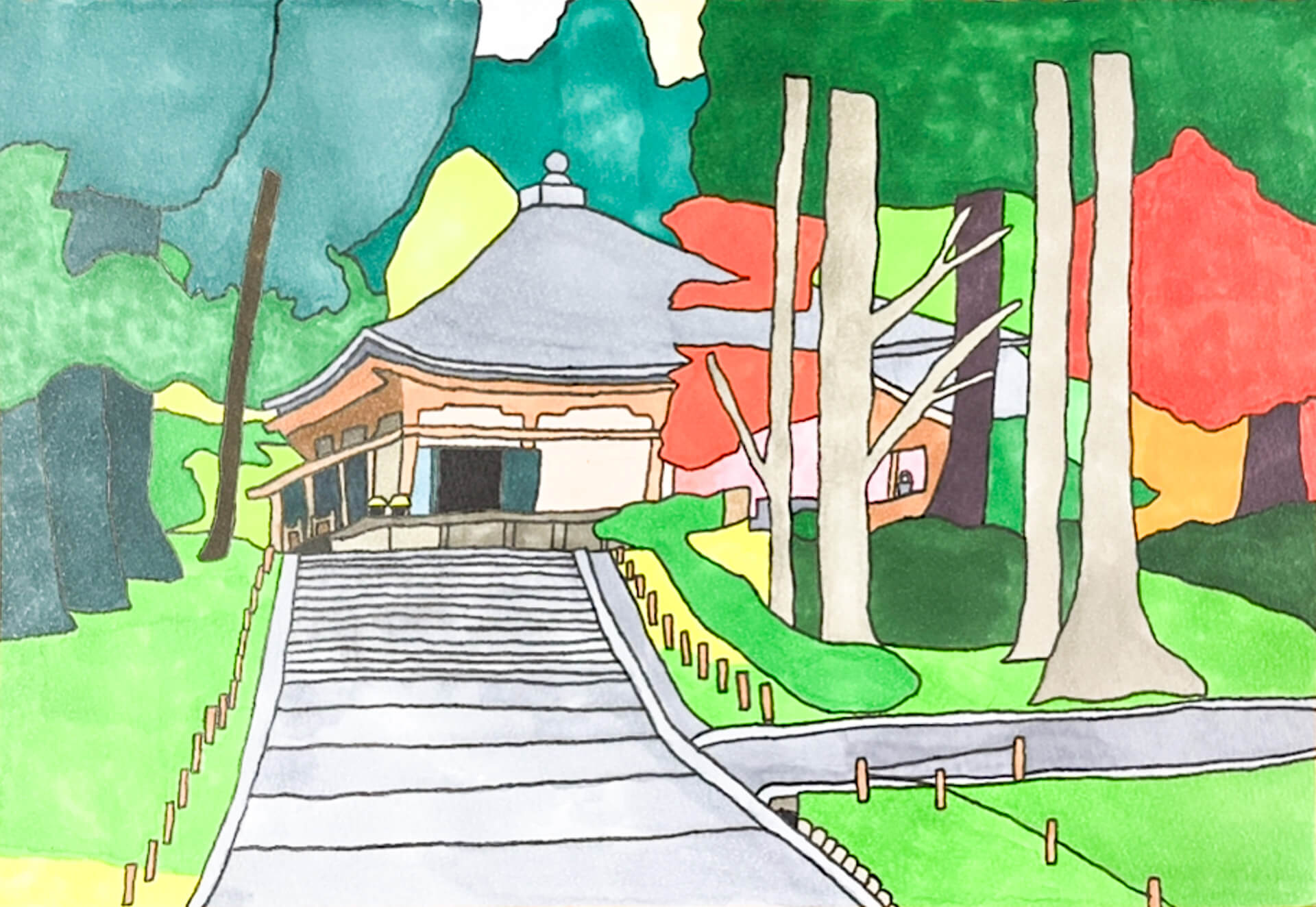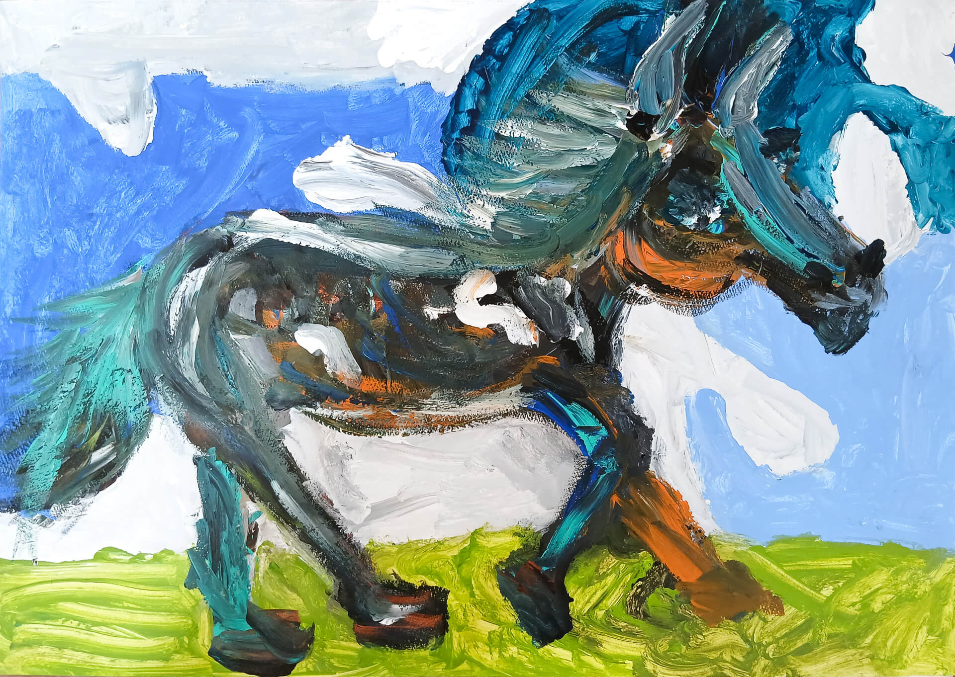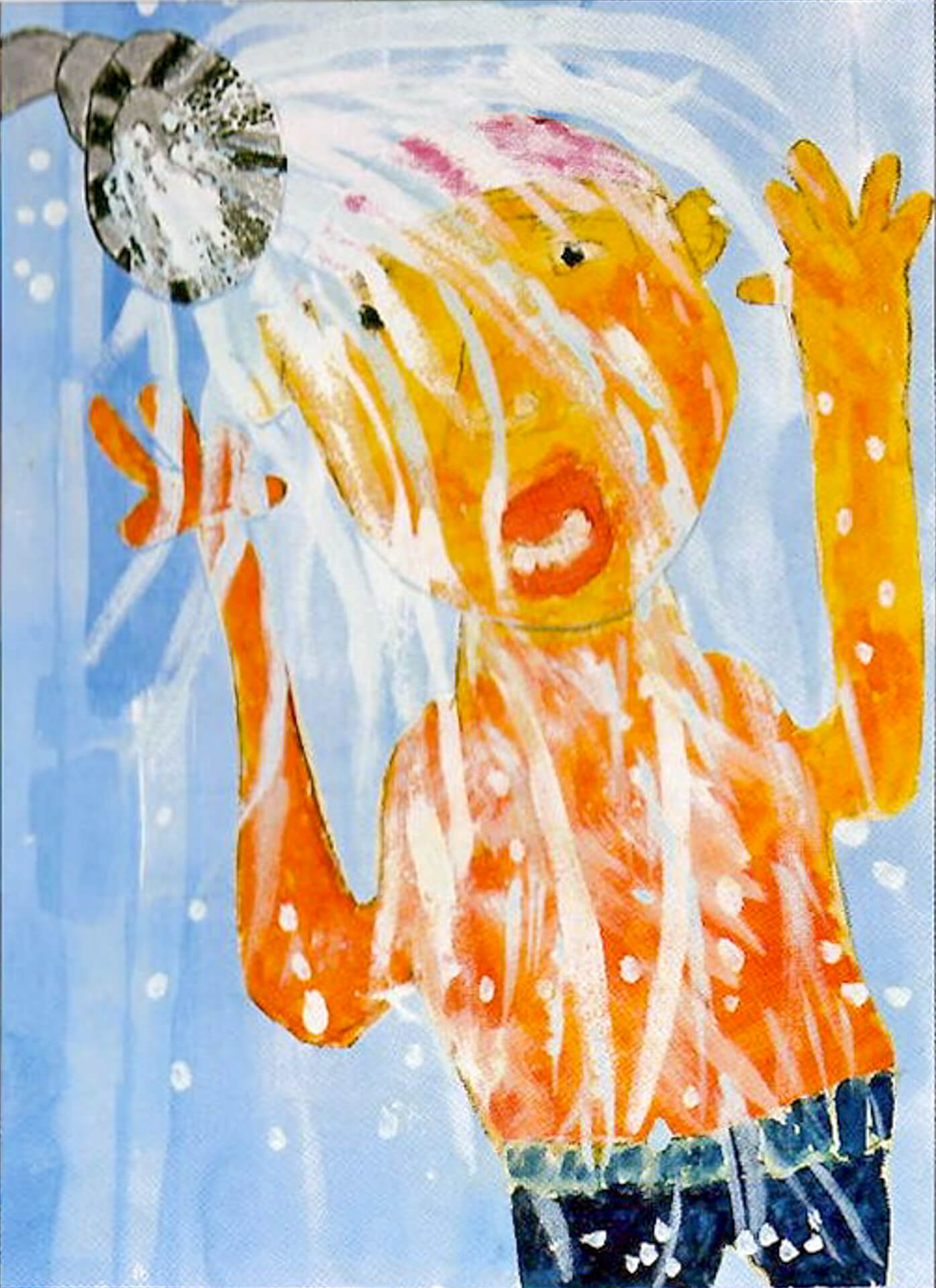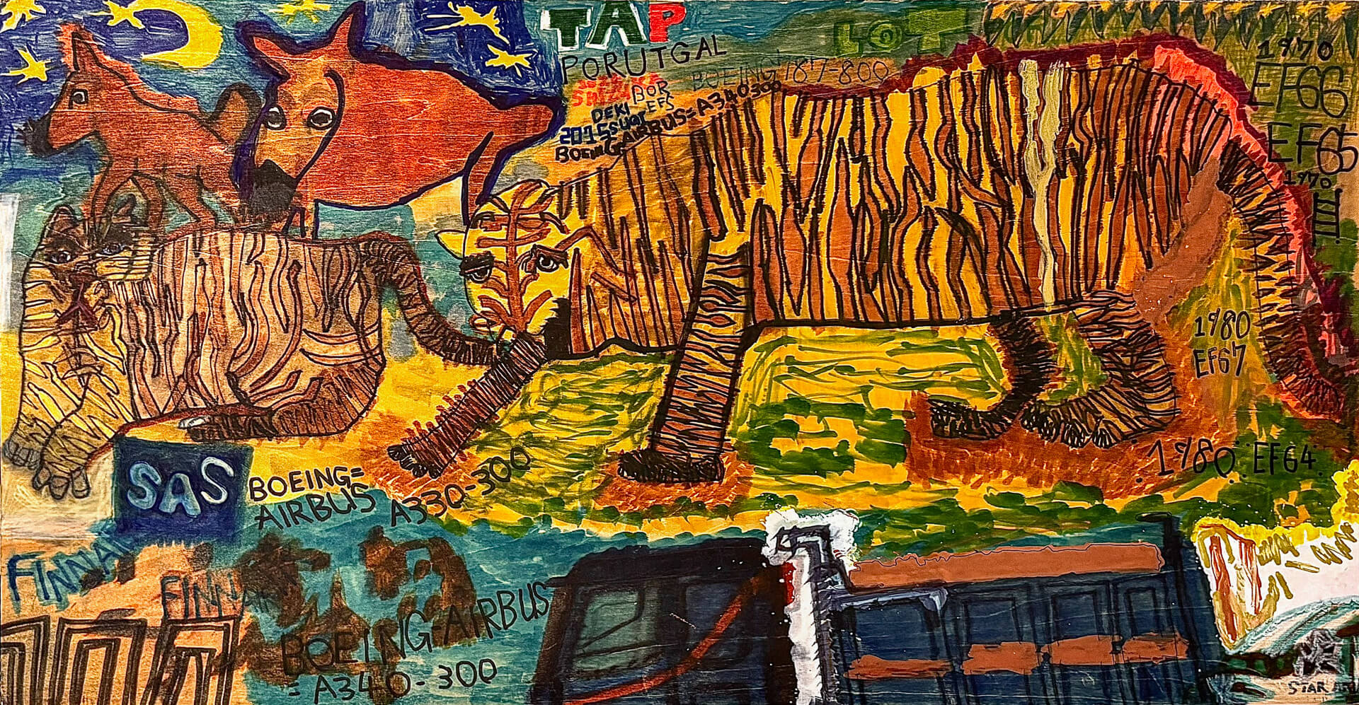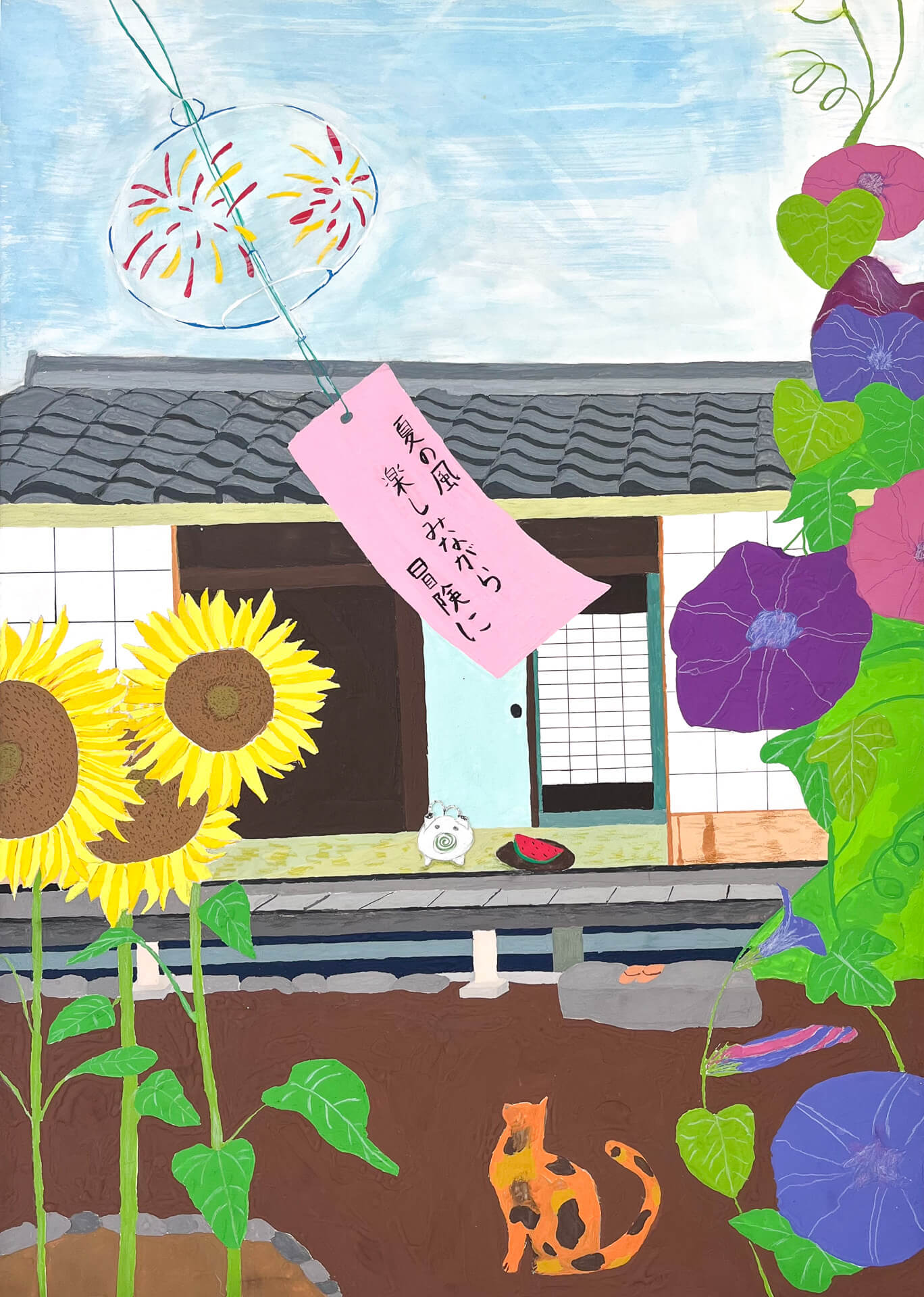 (90×150cm / 水彩絵の具、油性マジックペン)