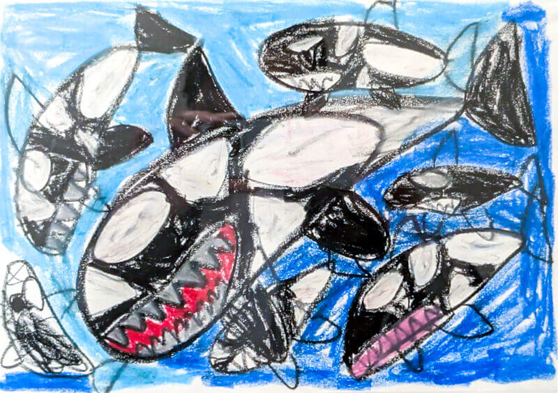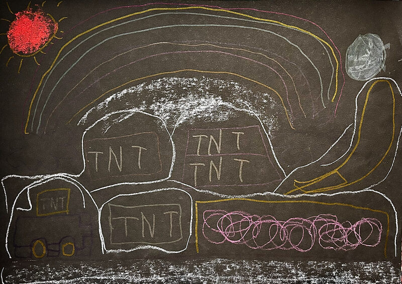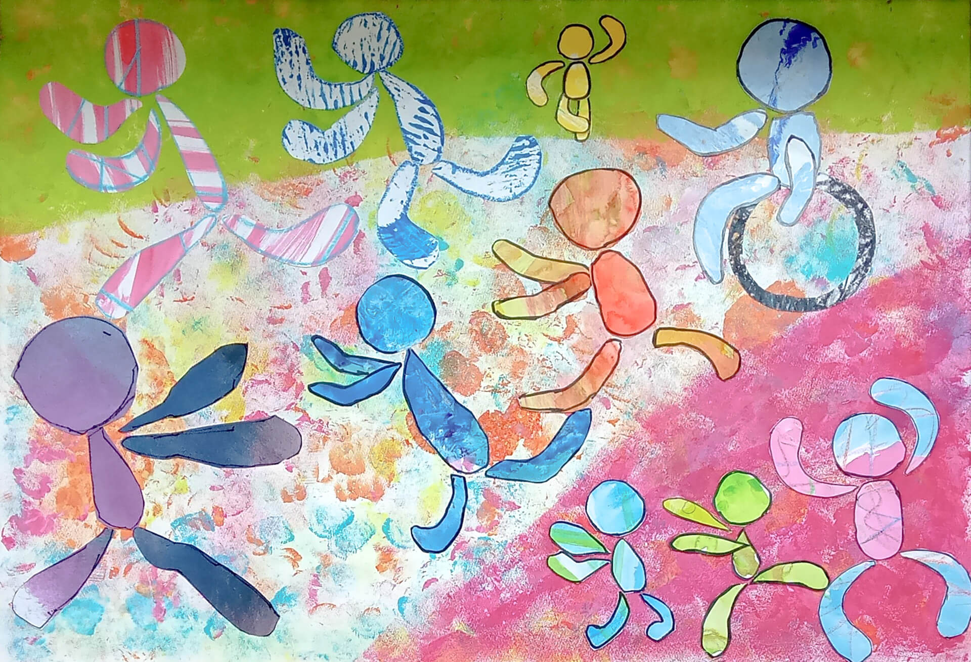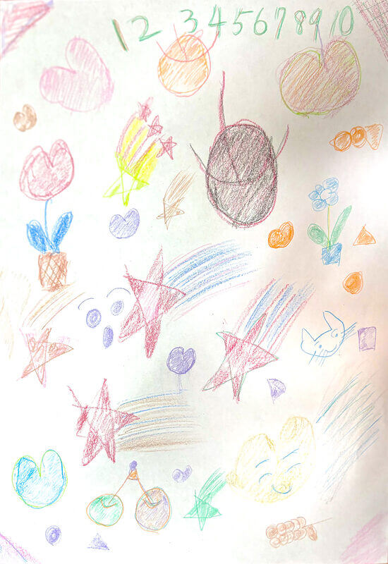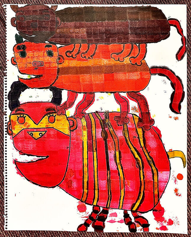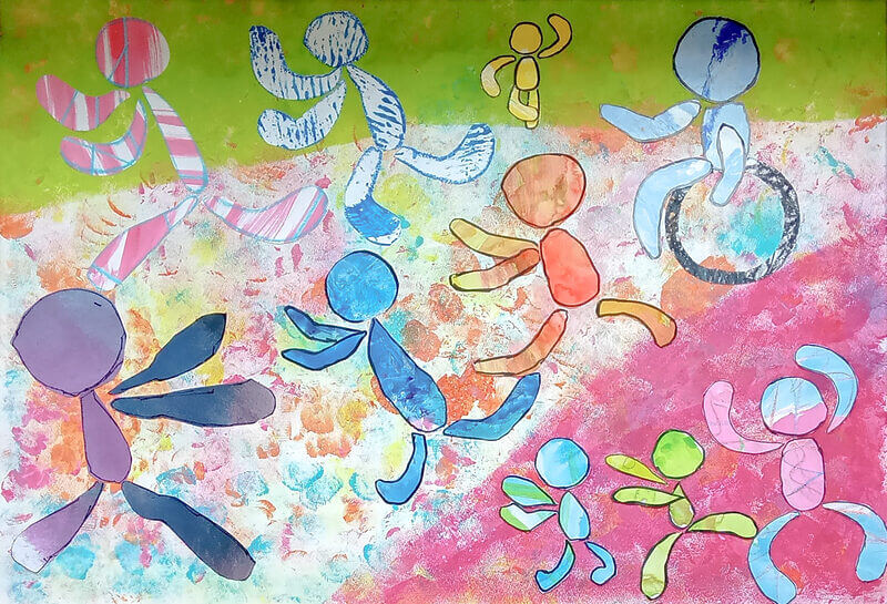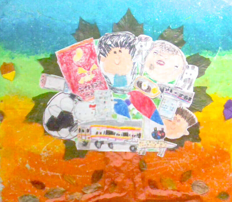 (38×53cm / クレヨン・絵の具・画用紙・色画用紙・アクリル絵の具・コンテ)