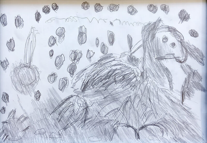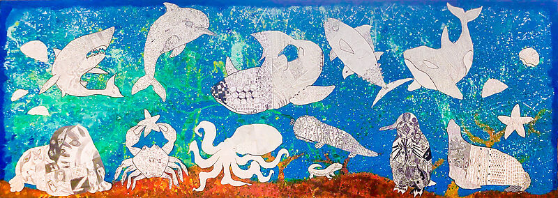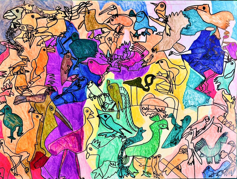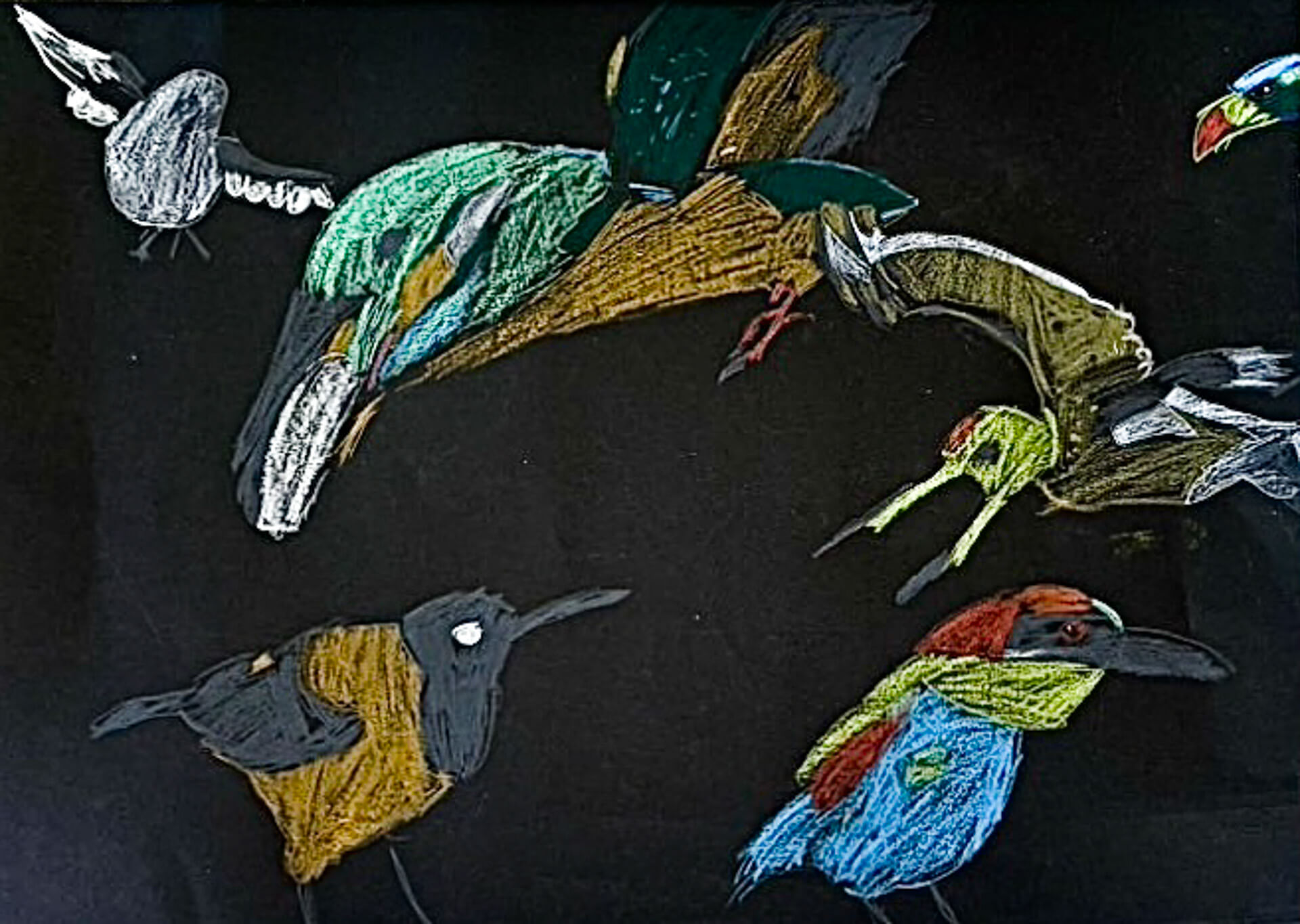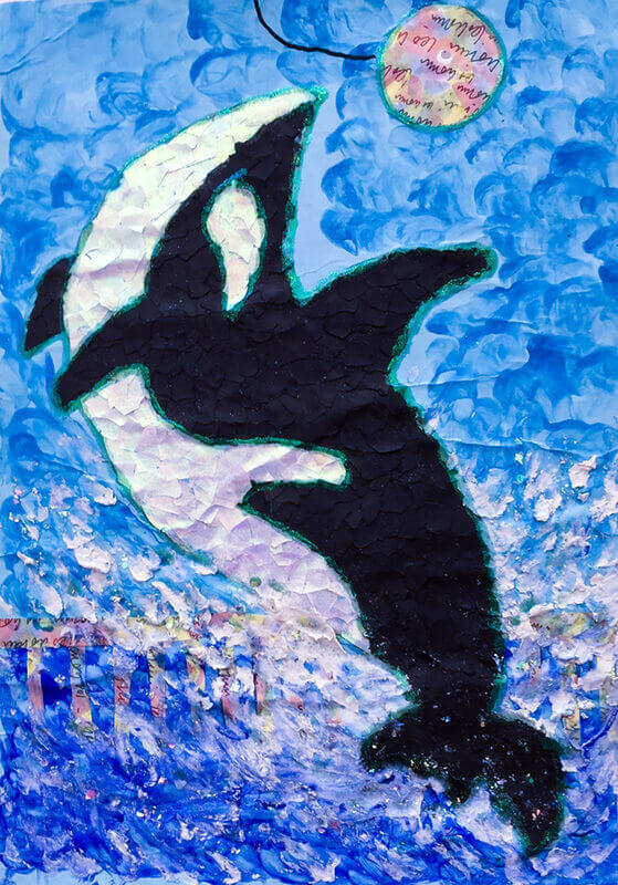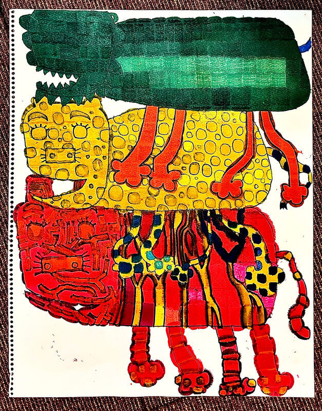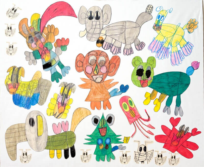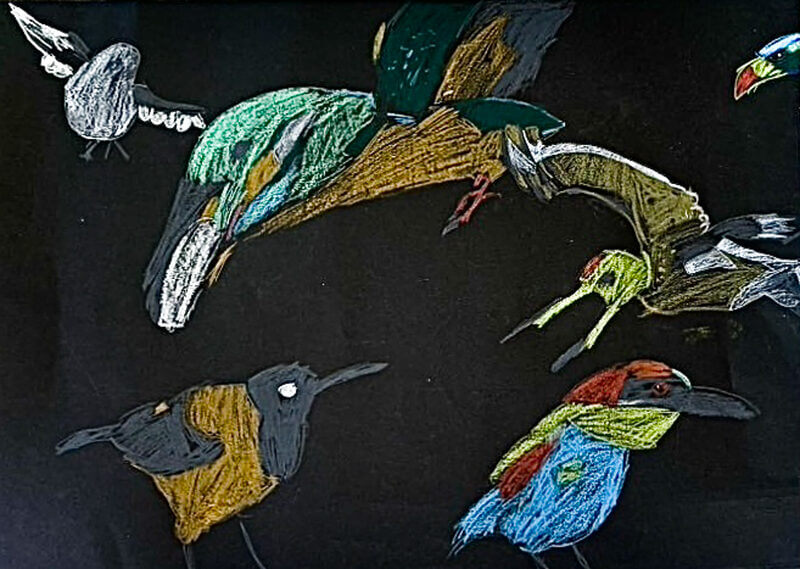 (38×53cm / クレヨン・絵の具・画用紙・色画用紙・アクリル絵の具・コンテ)