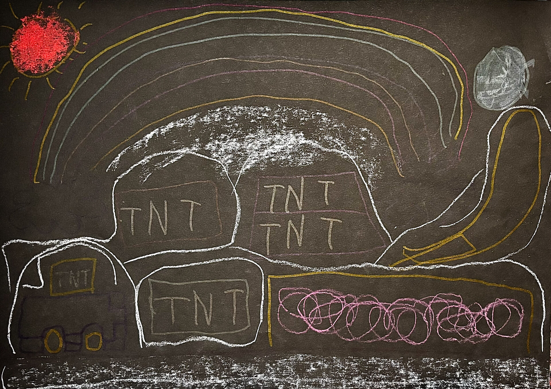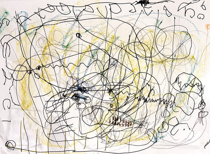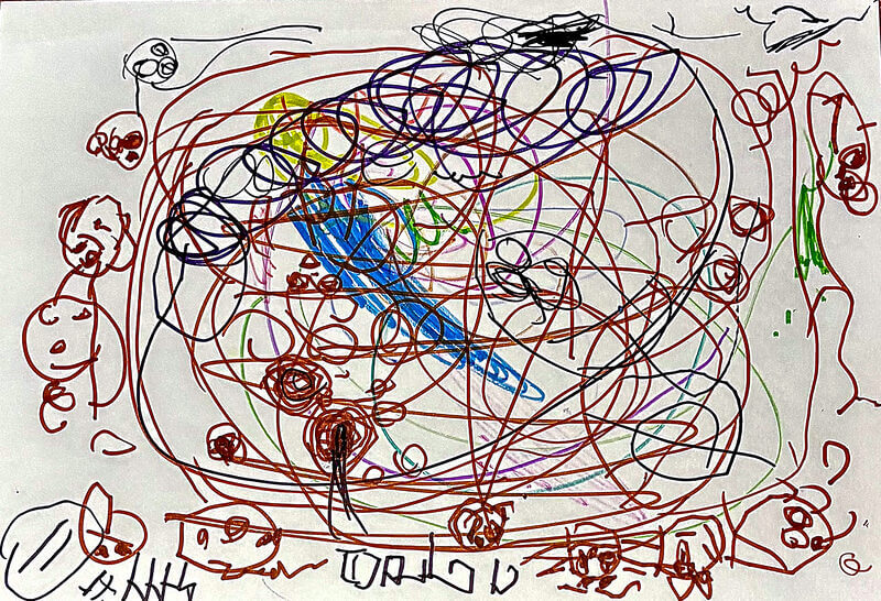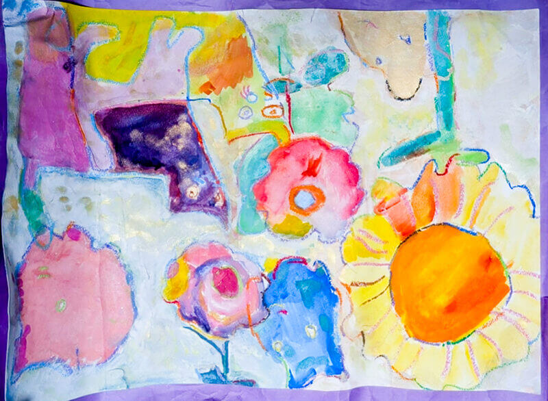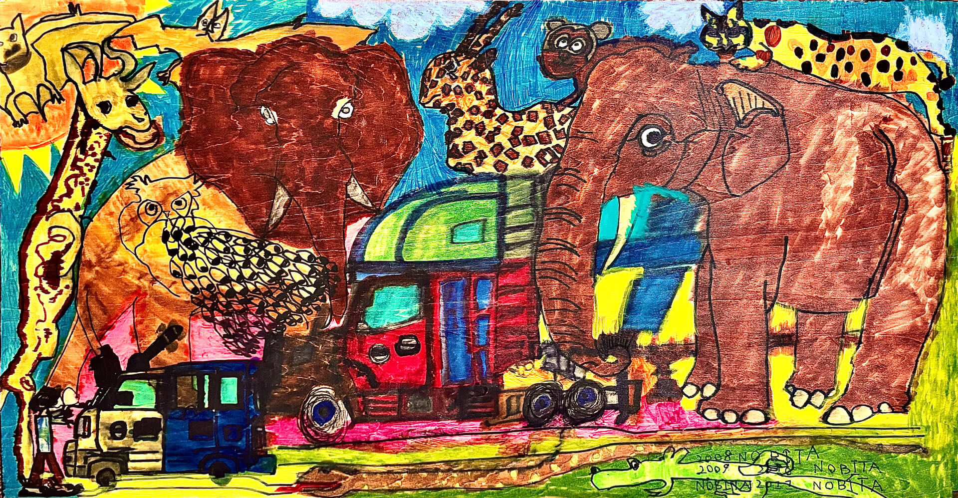 (120×130cm / アクリル絵の具、クレヨン)