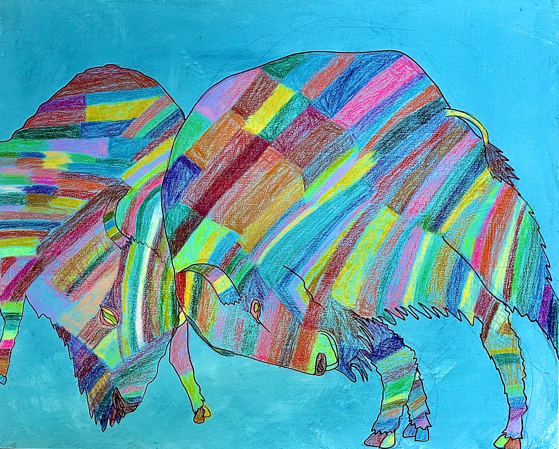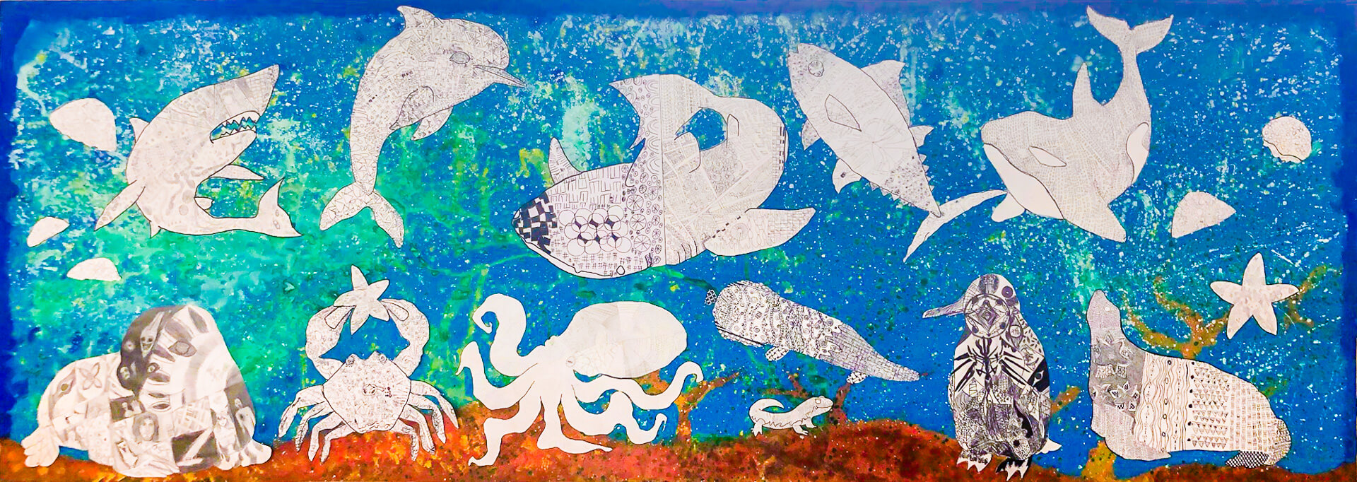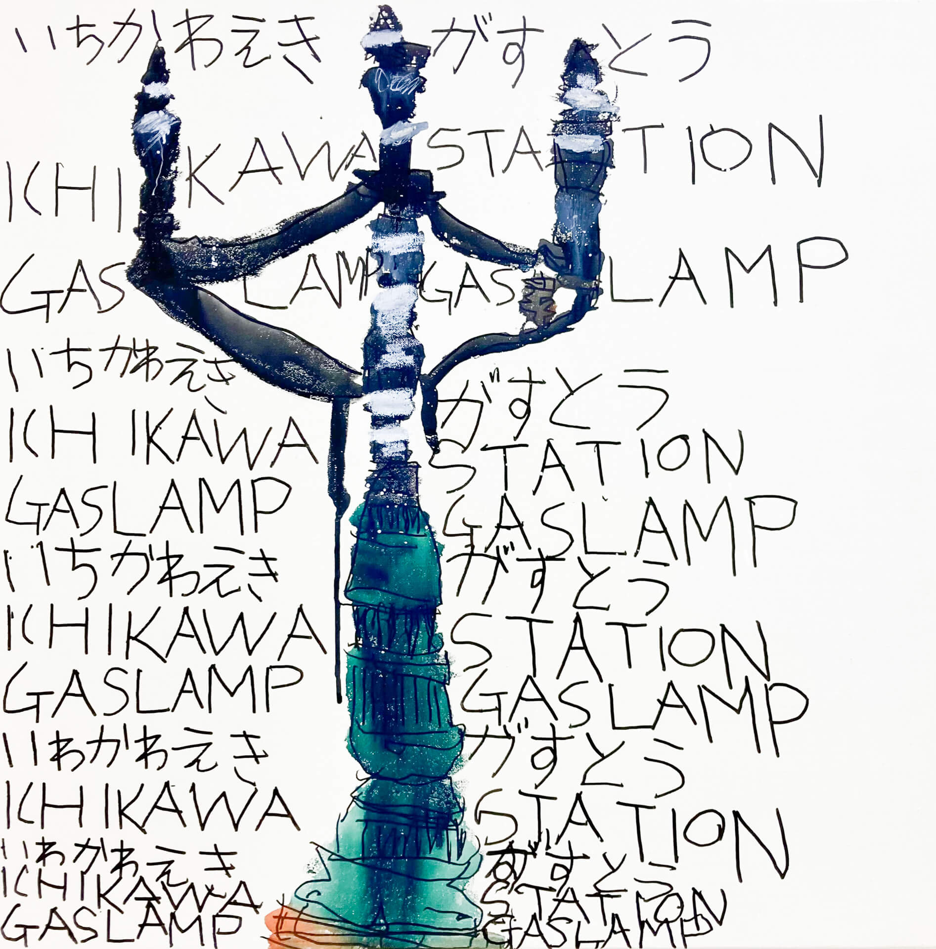 (120×130cm / アクリル絵の具、クレヨン)